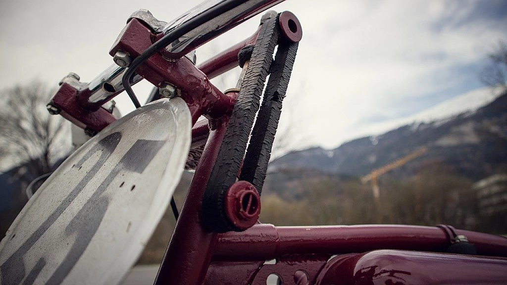 Schneeweiss war aber auch ein begnadeter Konstrukteur der die Gummibandfederung erfand, wie auf dieser Maschine zu sehen ist.