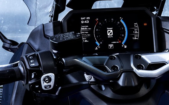 Er ist mit den hochwertigsten Instrumenten ausgestattet, die je in einem Yamaha-Roller zu finden waren. Der klassenbeste 7-Zoll-TFT-Farbdisplay bietet die Wahl zwischen drei Displayvarianten. Mit der Yamaha MyRide App bist Du mit Deinem TMAX verbunden und hast auch Zugriff auf Dein Smartphone, kannst Musik, Wetter, Benachrichtigungen und mehr abrufen. Mit der vollständigen Version der Garmin-Navigation* kommt man noch schneller und einfacher ans Ziel. (* Für die vollständige Version der Garmin-Navigation ist ein Abonnement erforderlich, das nicht in allen Ländern angeboten wird. Einige Navigationsfunktionen sind nicht in allen Ländern verfügbar. Bitte erkundige Dich bei Garmin nach der Verfügbarkeit.)
