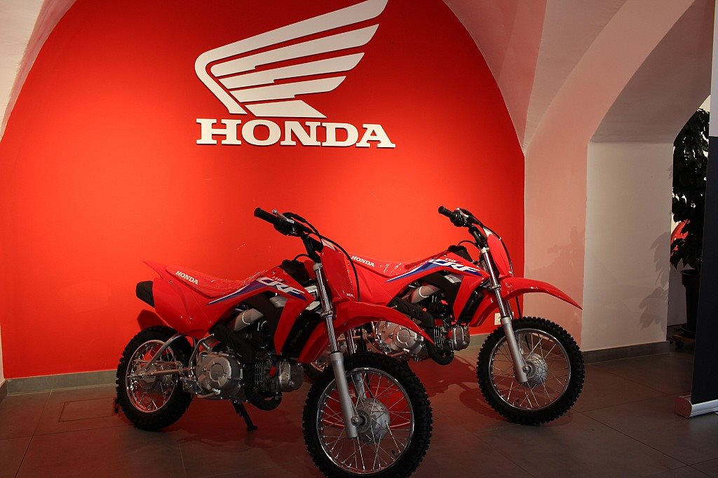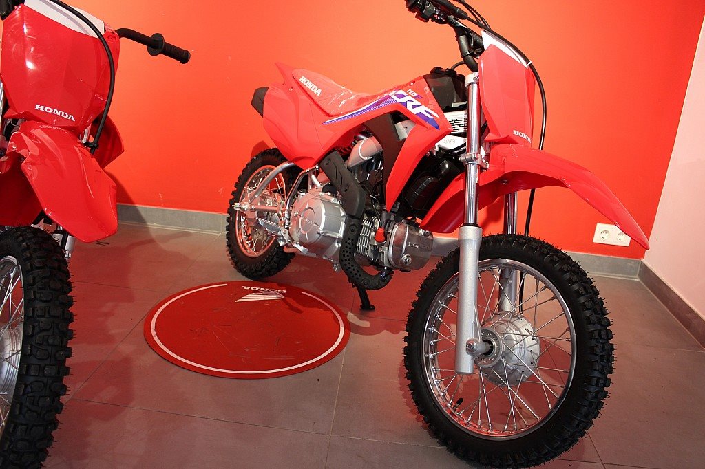 Bei der CRF110F geht es um das Fahrgefühl eines großen Motorrads und vor allem um viel Spaß. Sie richtet sich an die Altersgruppe von 8 bis 11 Jahren, besitzt ein robustes Chassis, einen E-Starter und einen zuverlässigen Viertaktmotor. Sie ist das ideale Sprungbrett zu den wettbewerbsorientierteren Honda MX- und Enduro-Maschinen mit 125/150 ccm Hubrau