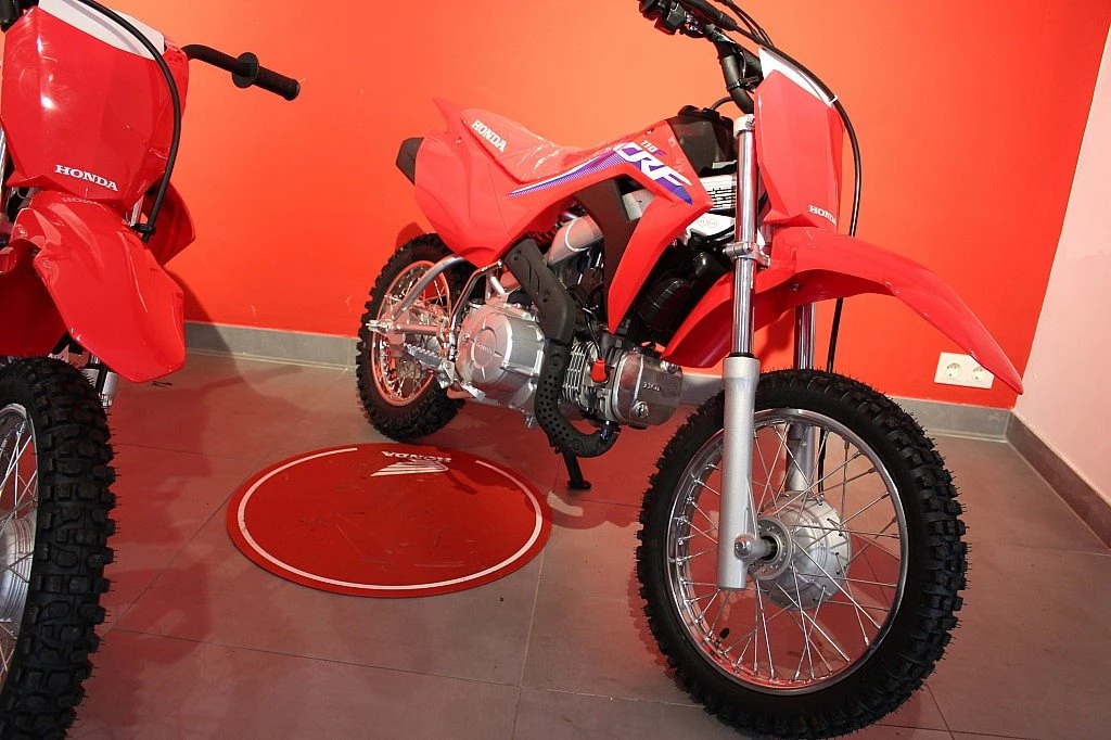 Bei der CRF110F geht es um das Fahrgefühl eines großen Motorrads und vor allem um viel Spaß. Sie richtet sich an die Altersgruppe von 8 bis 11 Jahren, besitzt ein robustes Chassis, einen E-Starter und einen zuverlässigen Viertaktmotor. Sie ist das ideale Sprungbrett zu den wettbewerbsorientierteren Honda MX- und Enduro-Maschinen mit 125/150 ccm Hubrau