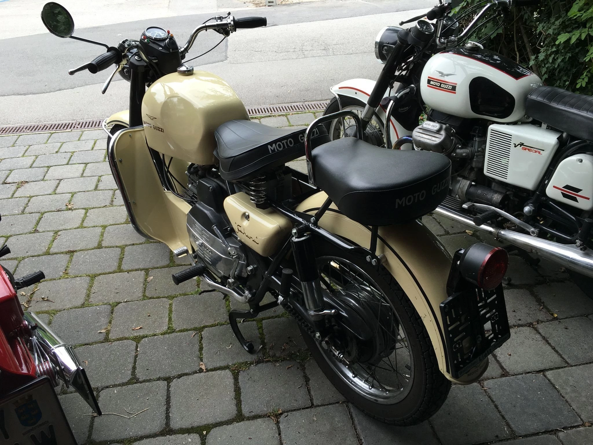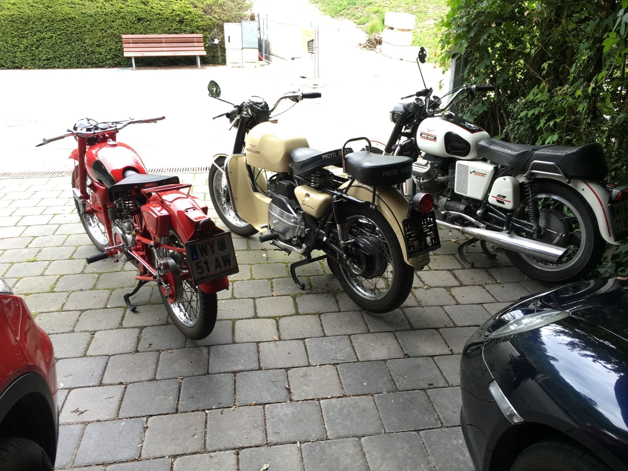 Ich löse meine kleine Guzzisammlung aus Zeitgründen auf da ich nun in der Pension auch in Italien lebe. Dort steht dann, so wie hie ein moderner Roller für die täglichen Wege zur Verfügung.