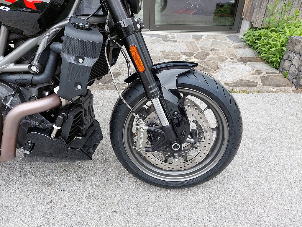 • 4-Kolben-Monoblock-Bremssättel von Brembo mit 320 mm großen Bremscheiben