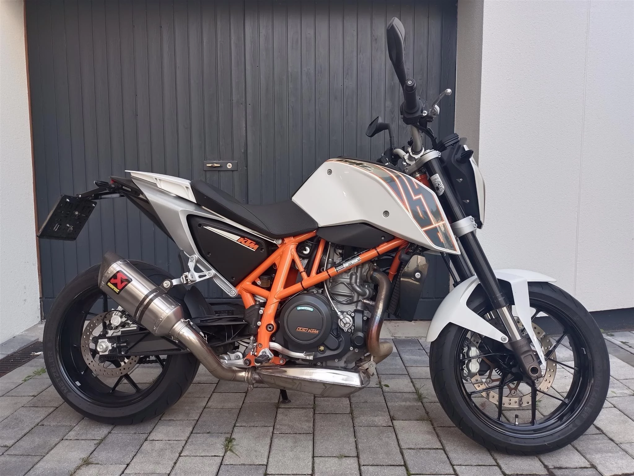 Verkaufe wegen Umstieg meine kleine Duke. Sehr gepflegt, um- und unfallfrei, vernünftig gefahren. Miniblinker, kleinere Spiegel (nicht montiert) und Akrapovic Endtopf dabei. Jeweils Original vorhanden. Sozius-Sitz vorhanden (selten gebraucht). Auf dem Foto ist die Abdeckung montiert. Kann gerne besichtigt und Probe gefahren werden. Großer Service inkl allem bei 13600 km gemacht.