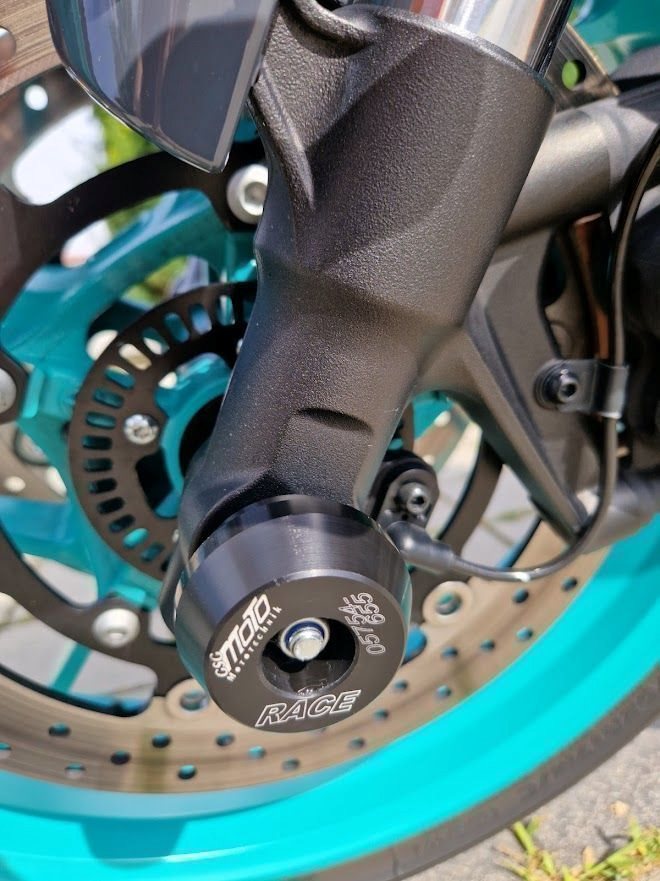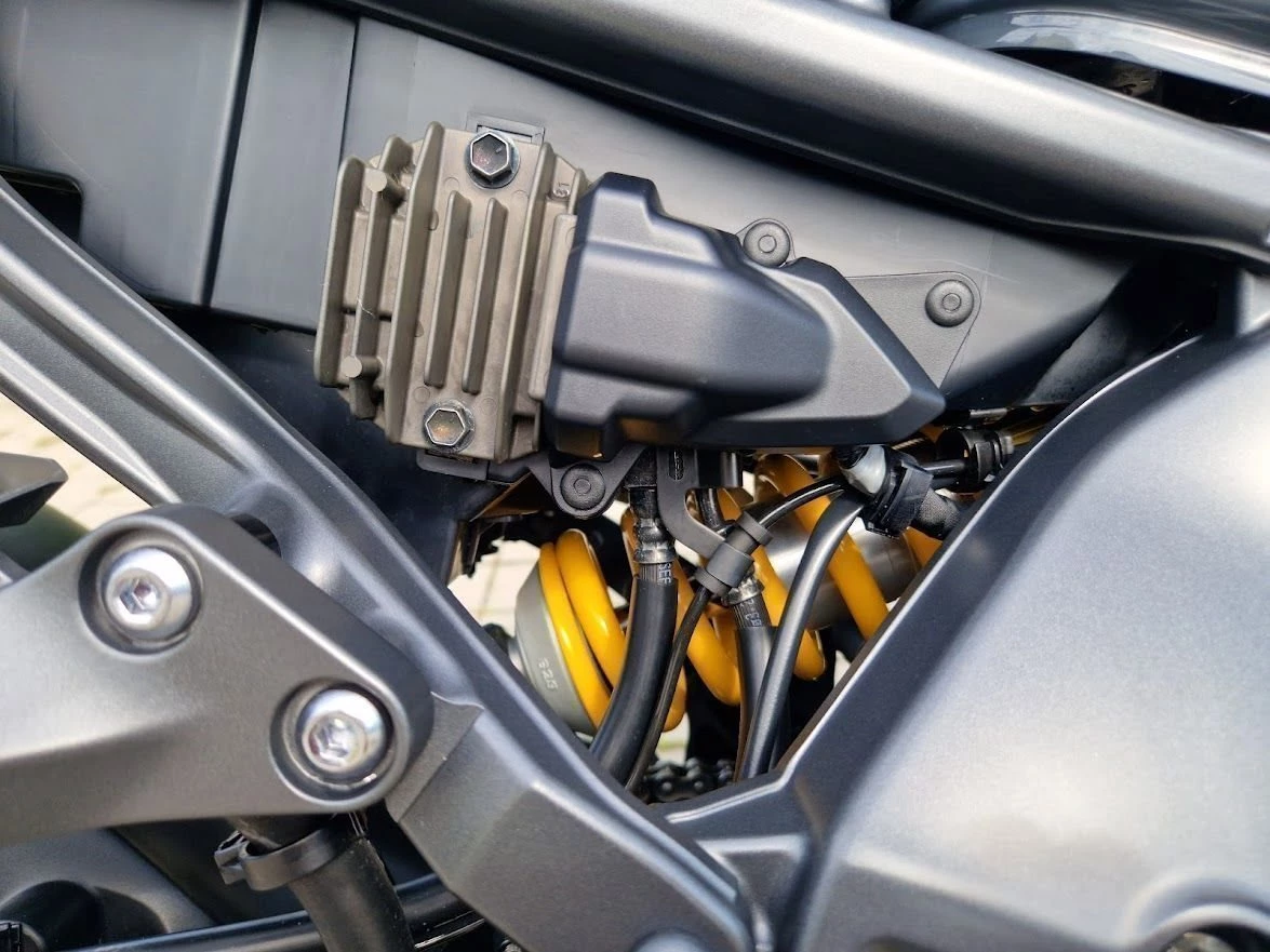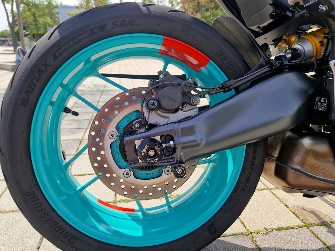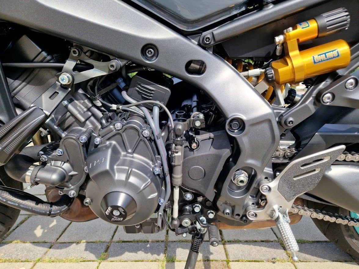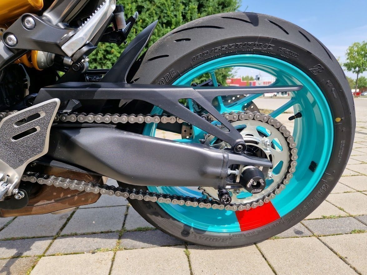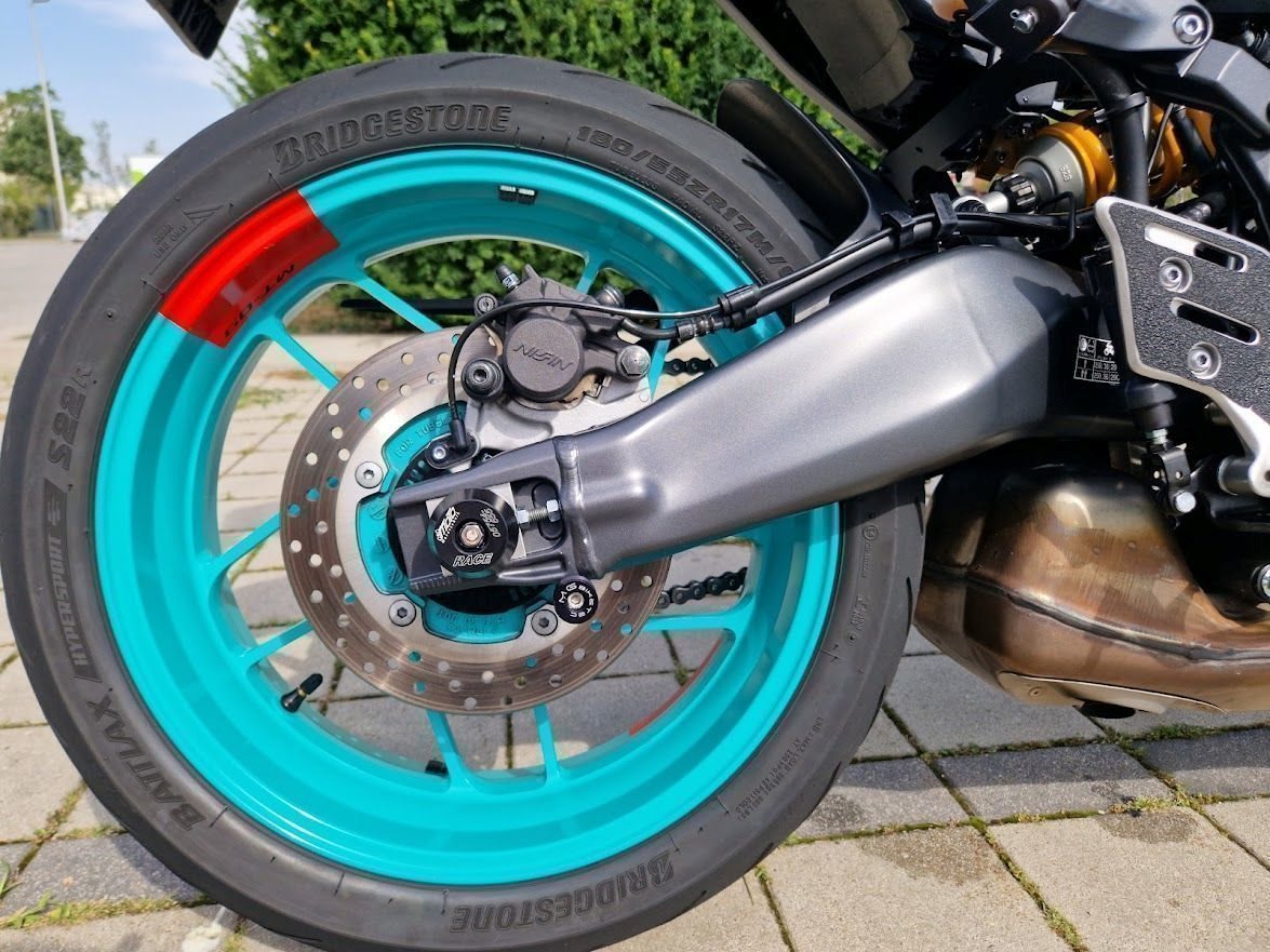 Es wurde ein Öhlinsfederbein verbaut und die Gabel wurde auch optimiert. Das Fahrwerk ist ein Traum und fühlt sich noch besser an als bei der SP - Variante.