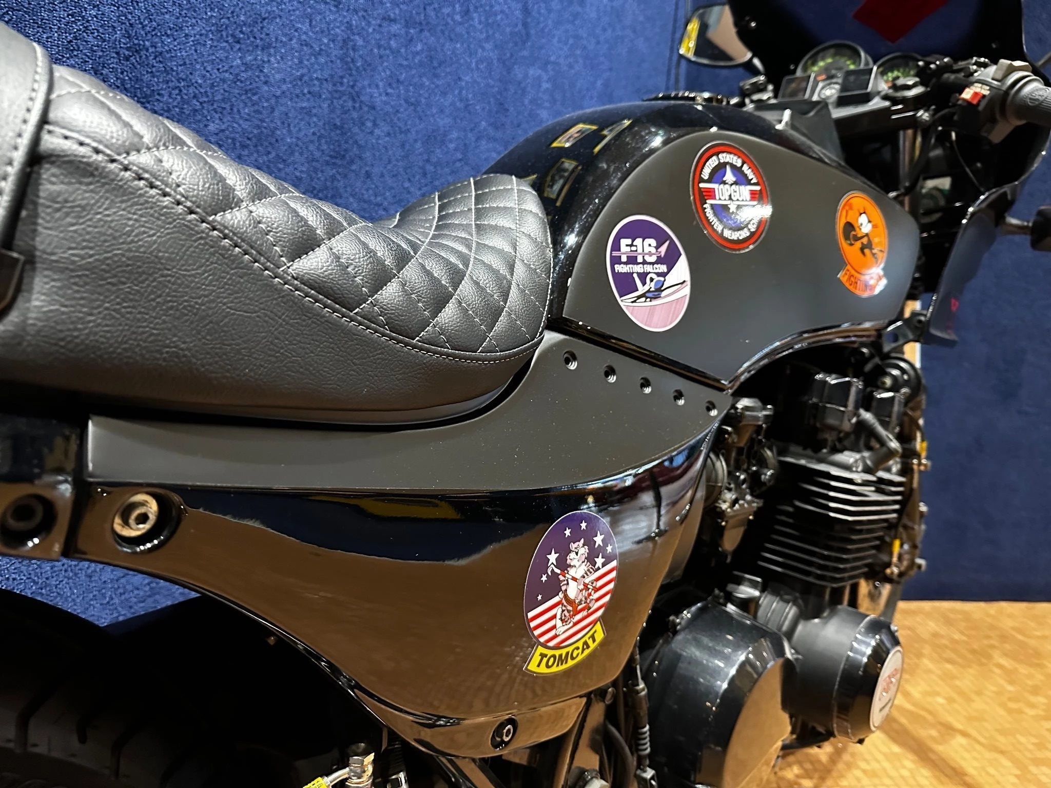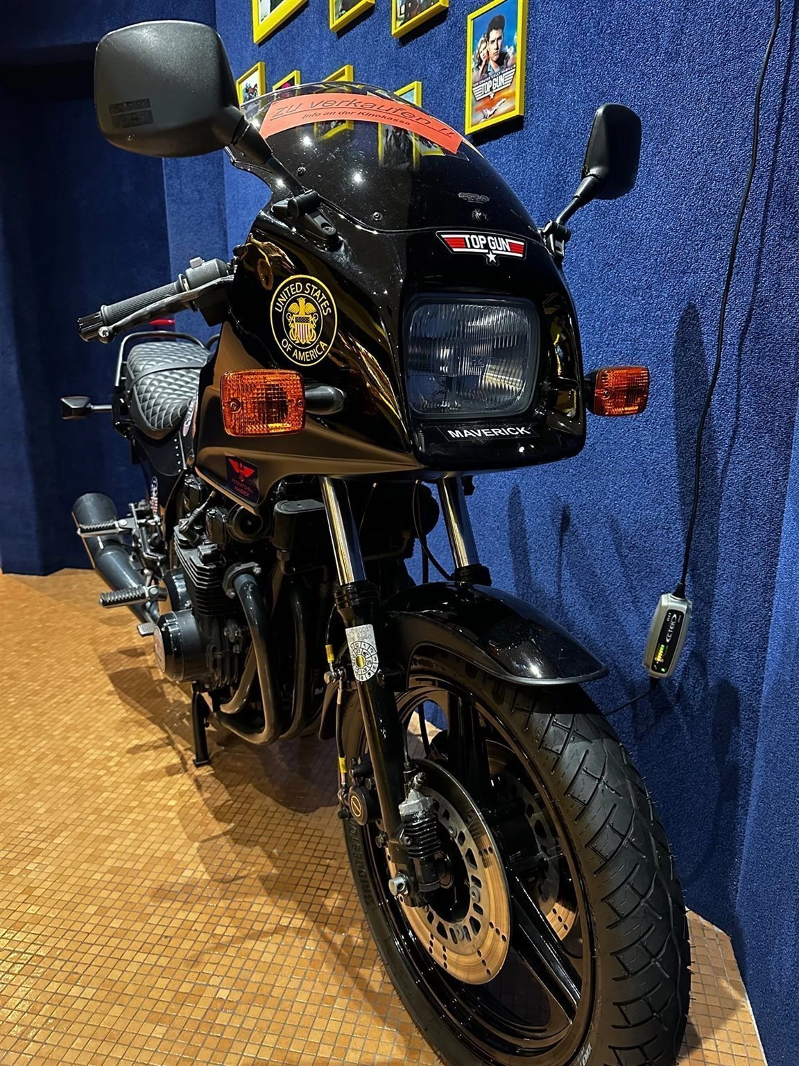 Professionell von Fachfirma voll restaurierte TopGun Kawa. Diese TopGun Kawa wurde um mehr als € 10.000,- restauriert, hat z.B. einen neuen Marvin 4in1 Auspuff, schwarze Stahflexleitungen, ALLE Dichtungen neu, pulverbeschichtete Felgen, neue matt/glänzend schwarze Lackierung ……..! Die Kawa steht in Tirol in einem Kino als Ausstellungsstück. Seit der Restaurierung (2023) wurden nur 52 Km gefahren. Die gesamt Km Leistung sowie die Unfallfreiheit wird garantiert! ANSCHAUEN LOHNT SICH!!! Weiters sind 2 dazu passende Lederkombis, 2 Paar Stiefel und Handschuhe aus dem selben Baujahr mit dabei. Auf Wunsch sind auch alle gerahmten Bilder der Ausstellung mit dabei. 06765977500. fly@markus-holzer.com PREIS IST VERHANDELBAR ;-)