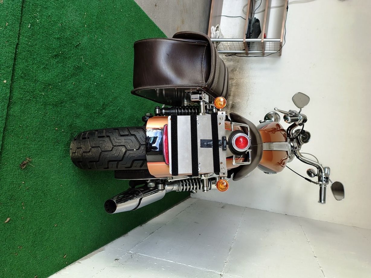 - Verchromter Gepäckträger, an dem der Soziussitz befestigt wird.