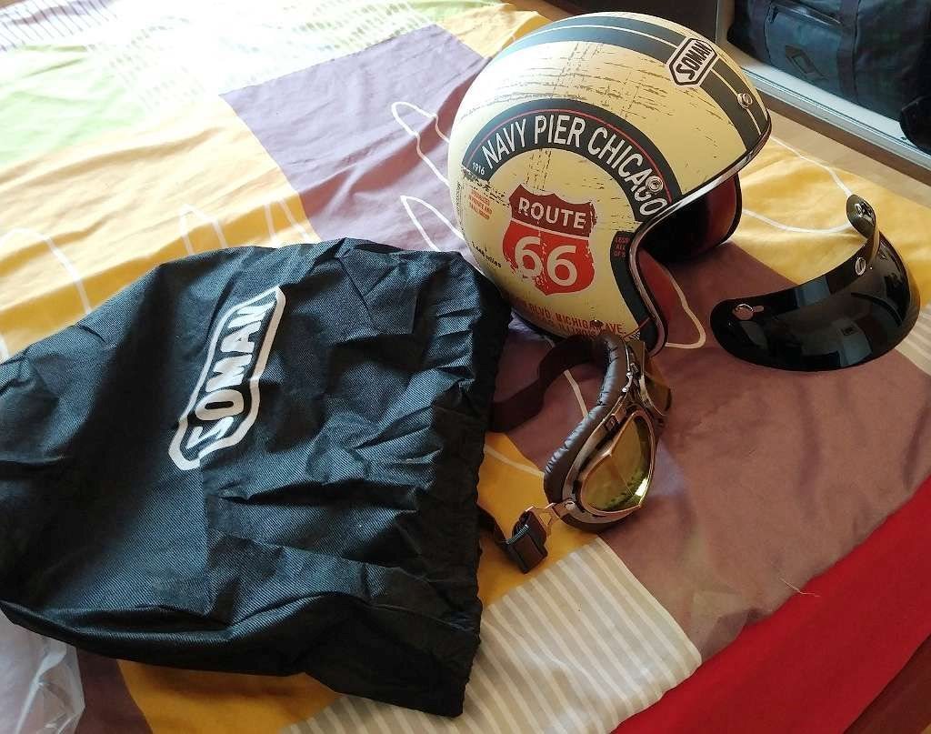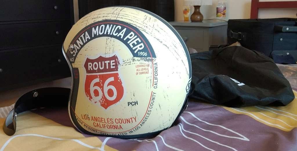 - Zwei Jet-Helme wie abgebildet, Größe S, einer davon (Route 66) praktisch neu wie im Laden, nie getragen.