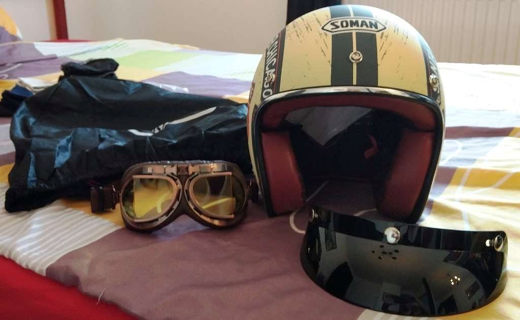 - Flexibles 'Google'-Visier mit Gummiband für Jet-Helme, praktisch wie neu.