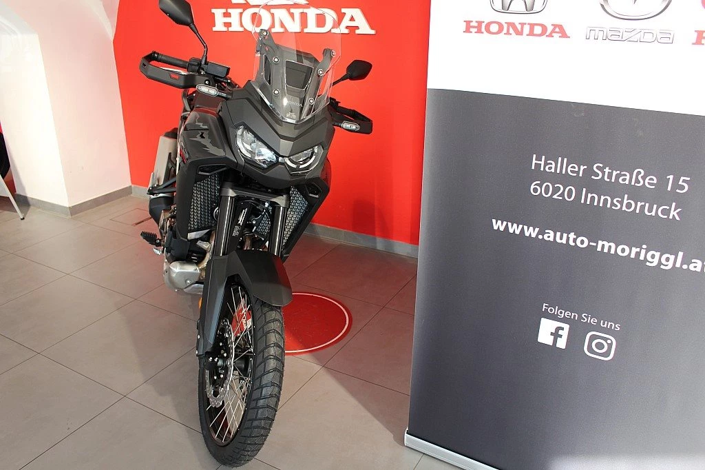 Die Africa Twin ist ab sofort in einer neuen Variante erhältlich. Die Leistung des gewohnt agilen Adventure-Bikes setzt neue Maßstäbe und zeichnet sich besonders durch das zusätzliche Drehmoment im unteren Drehzahlbereich aus. Der neue verstellbare Windschild macht die Tage auf der Straße wesentlich komfortabler. Die schlauchlosen Reifen lassen sich leicht reparieren.