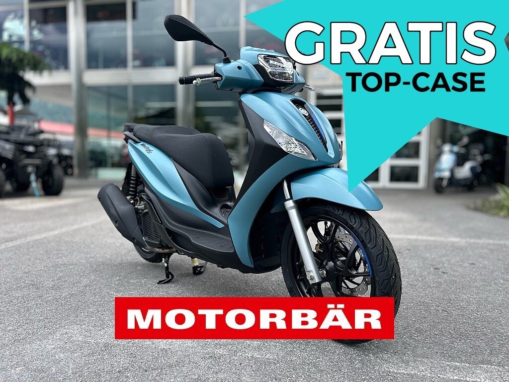 Im Aktionszeitraum erhältst du beim Kauf einer Piaggio Medley 125 Original Topcase samt Montageplatte im Wert von 499,- gratis zum Fahrzeug dazu.