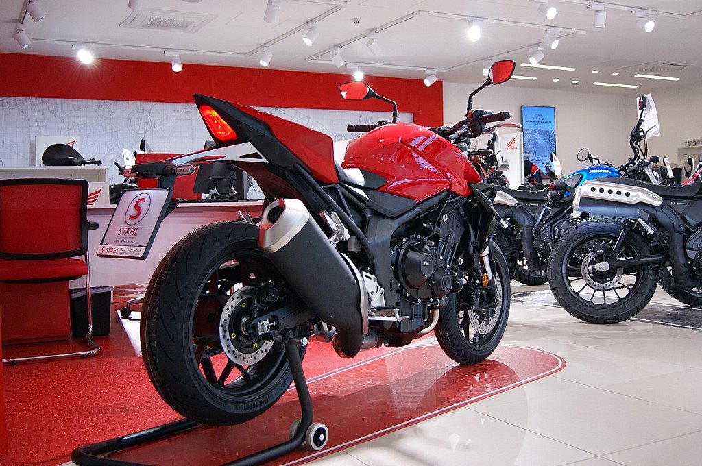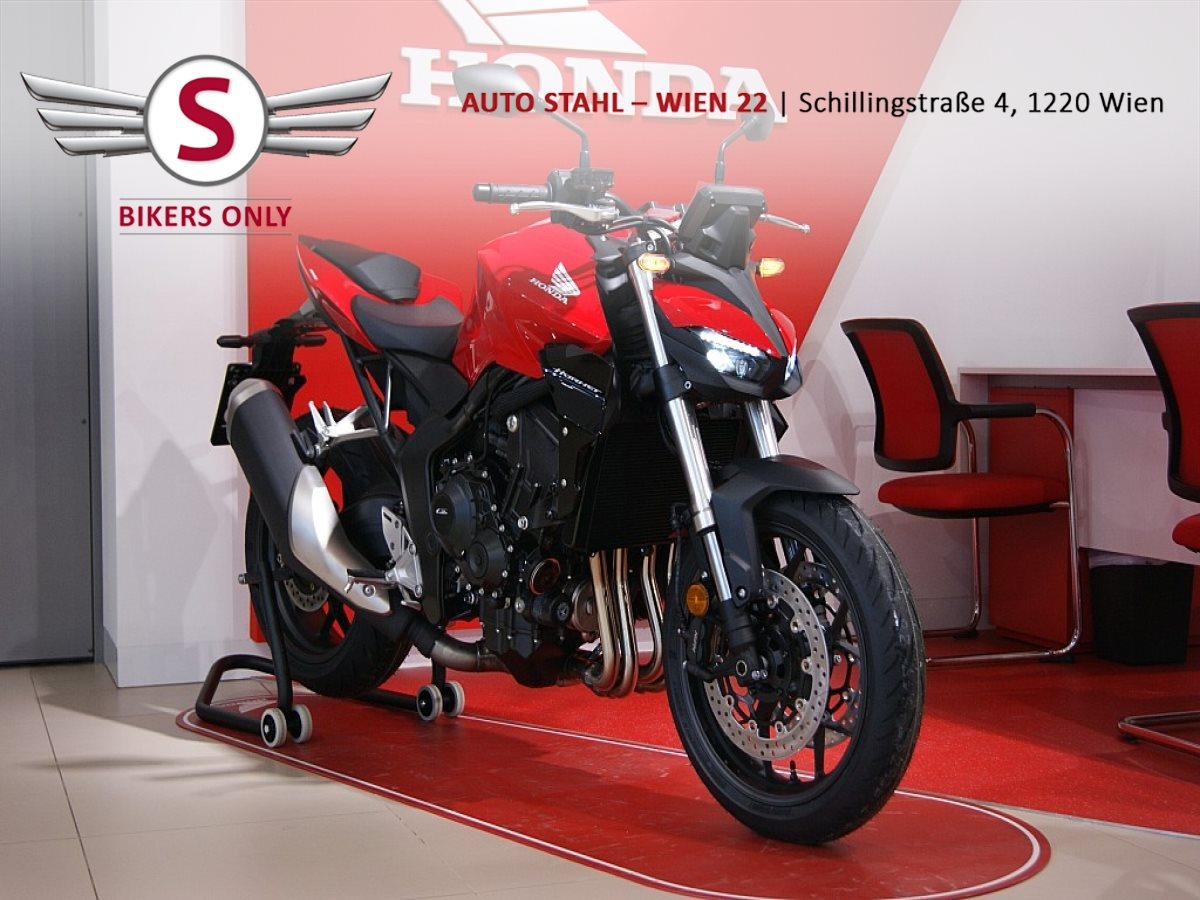 Die Hornet-Modellpalette ist jetzt komplett und unser Topmodell sticht heraus. Die neue CB1000 Hornet mit ihrem Vierzylindermotor ist ein erstklassiges Naked Bike, das den Asphalt zum Glühen bringt. Throttle By Wire sorgt für präzise Kontrolle, während das Fahrwerk mit der einstellbaren Showa 41-mm-SFF-BP-USD-Gabel und dem Pro-Link-Federbein ausgestattet ist. Die unverfälschte, aggressive Streetfighter-Attitüde wird durch einen markanten LED-Doppelscheinwerfern unterstrichen. Der 5-Zoll-TFT-Farbbildschirm und die Honda RoadSync-Konnektivität sorgen für die nötigen Informationen. Bereit für den vollen Angriff?