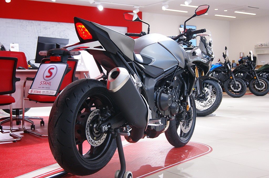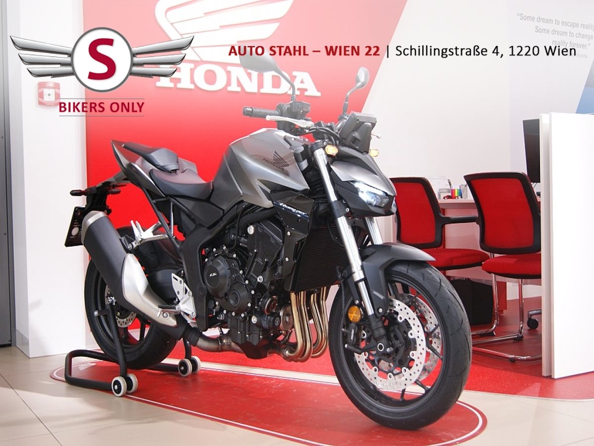 Die Hornet-Modellpalette ist jetzt komplett und unser Topmodell sticht heraus. Die neue CB1000 Hornet mit ihrem Vierzylindermotor ist ein erstklassiges Naked Bike, das den Asphalt zum Glühen bringt. Throttle By Wire sorgt für präzise Kontrolle, während das Fahrwerk mit der einstellbaren Showa 41-mm-SFF-BP-USD-Gabel und dem Pro-Link-Federbein ausgestattet ist. Die unverfälschte, aggressive Streetfighter-Attitüde wird durch einen markanten LED-Doppelscheinwerfern unterstrichen. Der 5-Zoll-TFT-Farbbildschirm und die Honda RoadSync-Konnektivität sorgen für die nötigen Informationen. Bereit für den vollen Angriff?