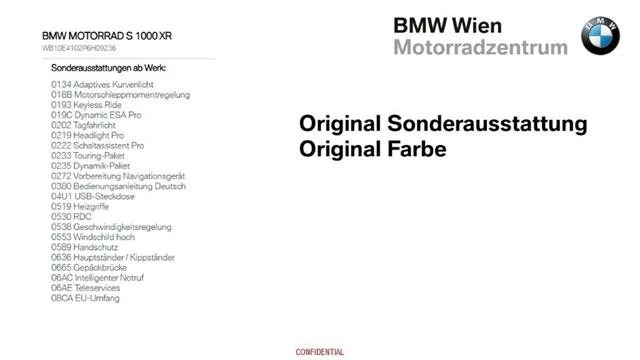 Fahrgestellnr: 6H09236Heizgriffe, Koffer/Topcase & Halterung, Koffer-/Topcasehalterung, Tempomat, Warnblinkanlage, Windschild , Eine schoene S 1000 XR inkl. Sonderausstattungen ab Werk siehe Bild 15 steht zum Verkauf., Zusaetzlich ist ein Wunderlich Sturzbuegel , ein Topcase sowie 2 Seitenkoffer verbaut. , Gerne bieten wir auch eine entsprechende Finanzierung, Versicherung mit und ohne Kasko oder die Zustellung des Bikes nach Ihren Wuenschen an. 6H09236, Sie koennen mich auch direkt kontaktieren : Christian Maurer 0676 888 755 224 oder christian.cm.maurer@bmw-wien.at,
