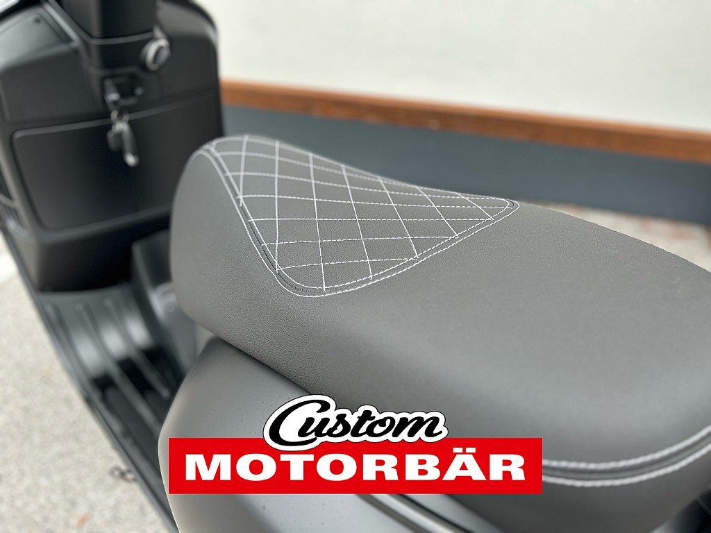 Dazu gibts auf Wunsch veredelte Felgen, stylische Spiegel und handgemachte Sättel, die perfekt zum Look passen.