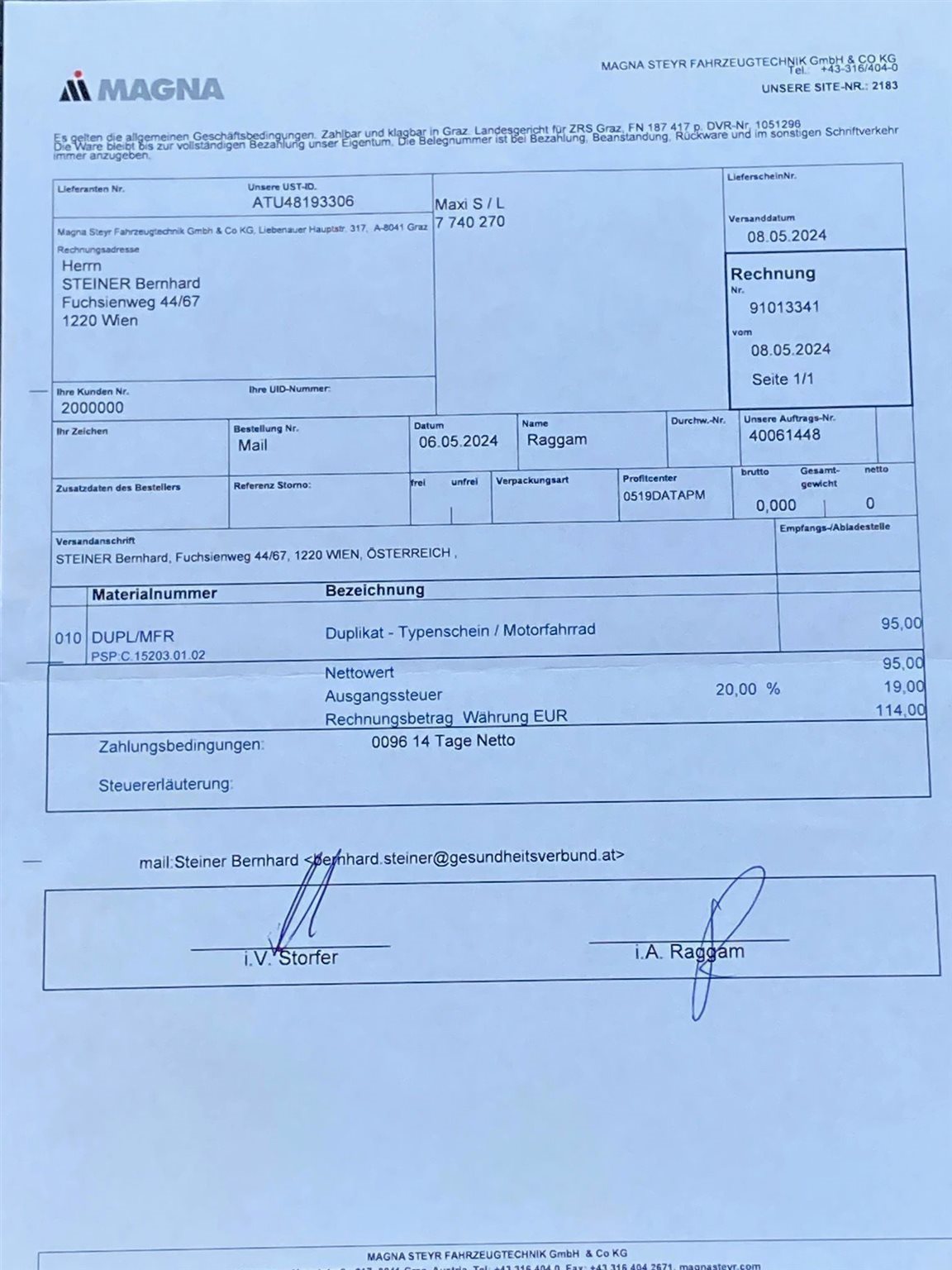 - Speditionslieferung aus dem Ausland