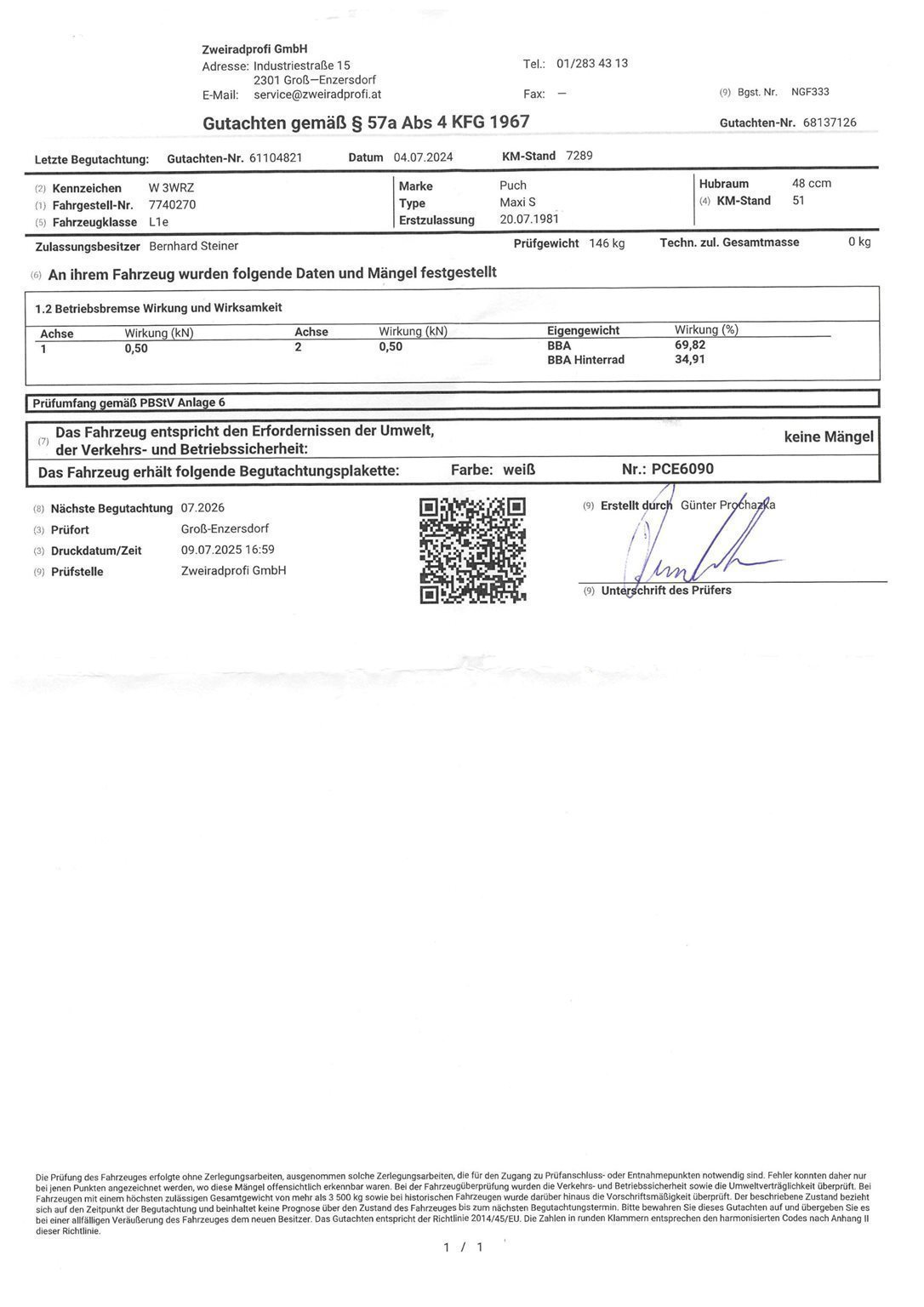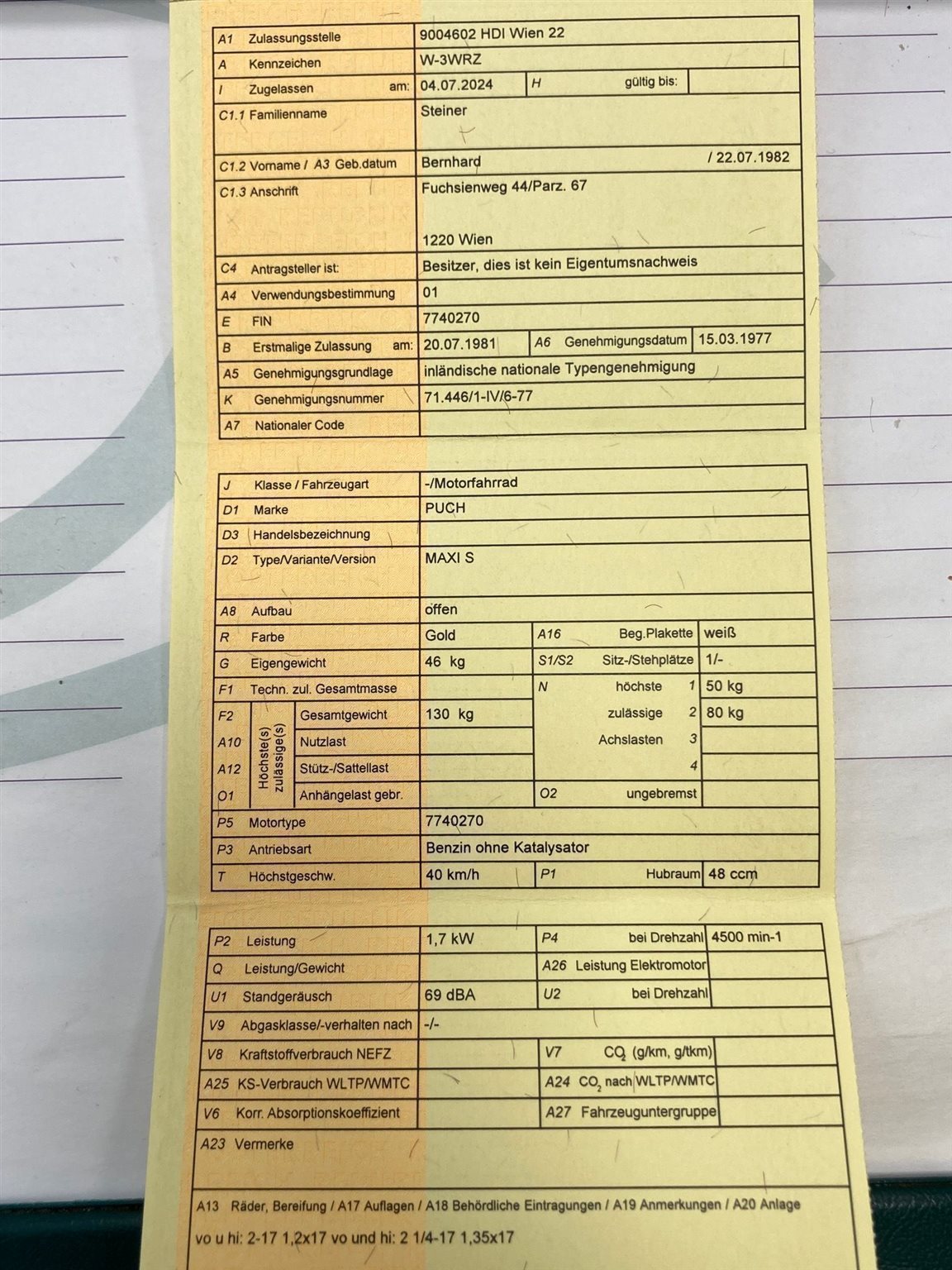 Neue §57a Überprüfung (bis 2026). Draufsetzten und Spaß haben! Verkauft wird eine vor Jahren komplett restaurierte Puch Maxi S welche 2024 wieder ins Leben zurück gerufen wurde. Ich bin der zweite Besitzer des Motorfahrrades. Die Maxi wurde im Zuge der Restauration auf einen Malossi Zylinder und einen Replika-auspuff umgebaut. Vergaser ist der Originale und den Original Auspuff gibt es auch noch. Tacho wurde voriges Jahr ein neuer montiert, da der alte die Kilometer nicht mehr 1:1 gezählt hat. 2024 Jahr hat sie auch neue Reifen und Schläuche sowie ein komplettes Service (inkl. Sportkupplung von RBO) bekommen. Zusätzlich habe ich voriges Jahr eine Tankanzeige (Schlauch) und die Tanktasche montiert. Eine Cross Verkleidung ist auch mit dabei. Kilometer können sich noch ändern da sie ab und an noch zu Oldtimertreffen bewegt wird. Kann gerne besichtigt und eventuell Probegefahren werden. Da nach Scheidung und mehrmaliger Übersiedelung der original Typenschein verloren ging wurde mit Notar, Magna - Steyr und Co ein Duplikat angefordert.