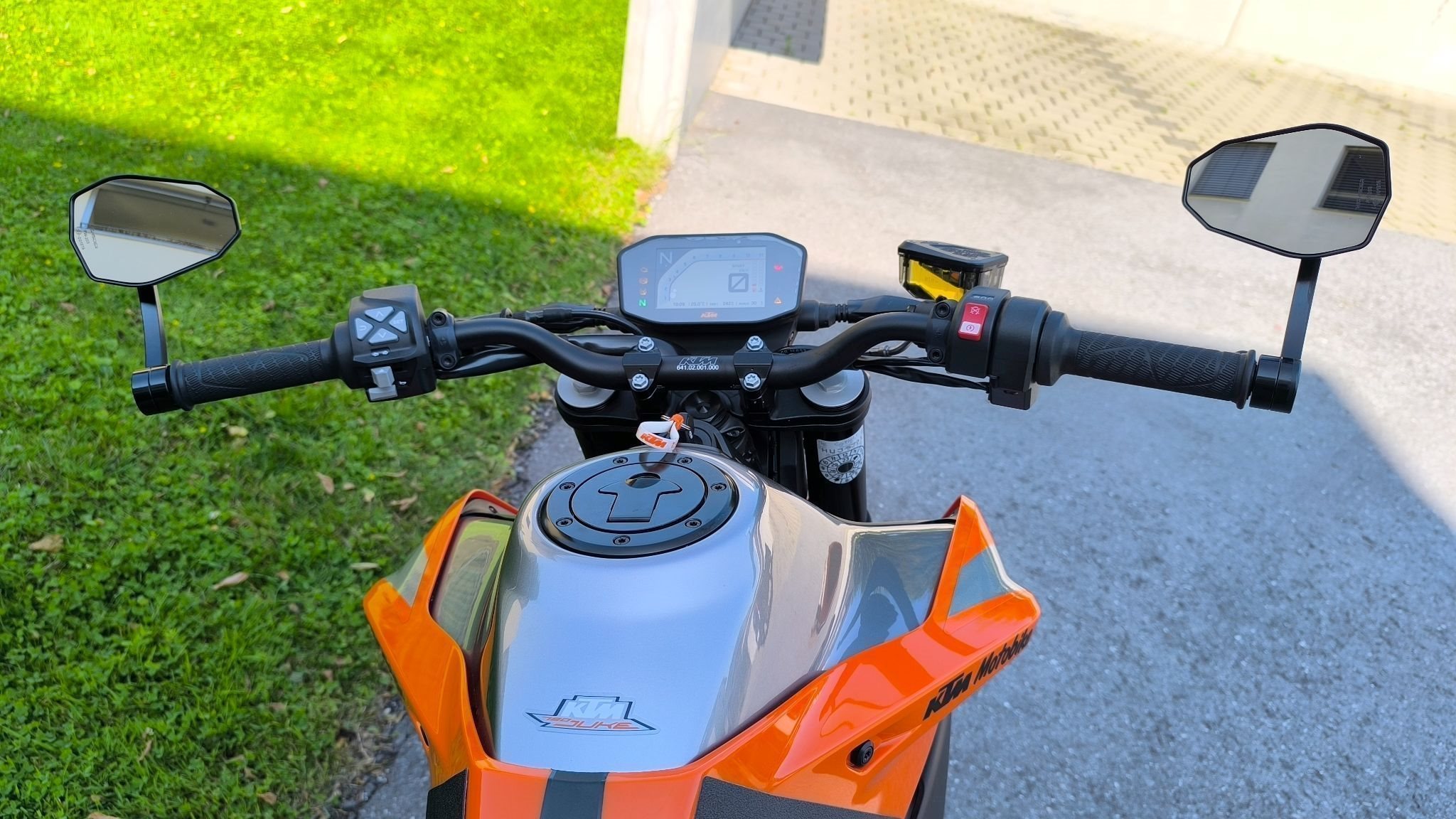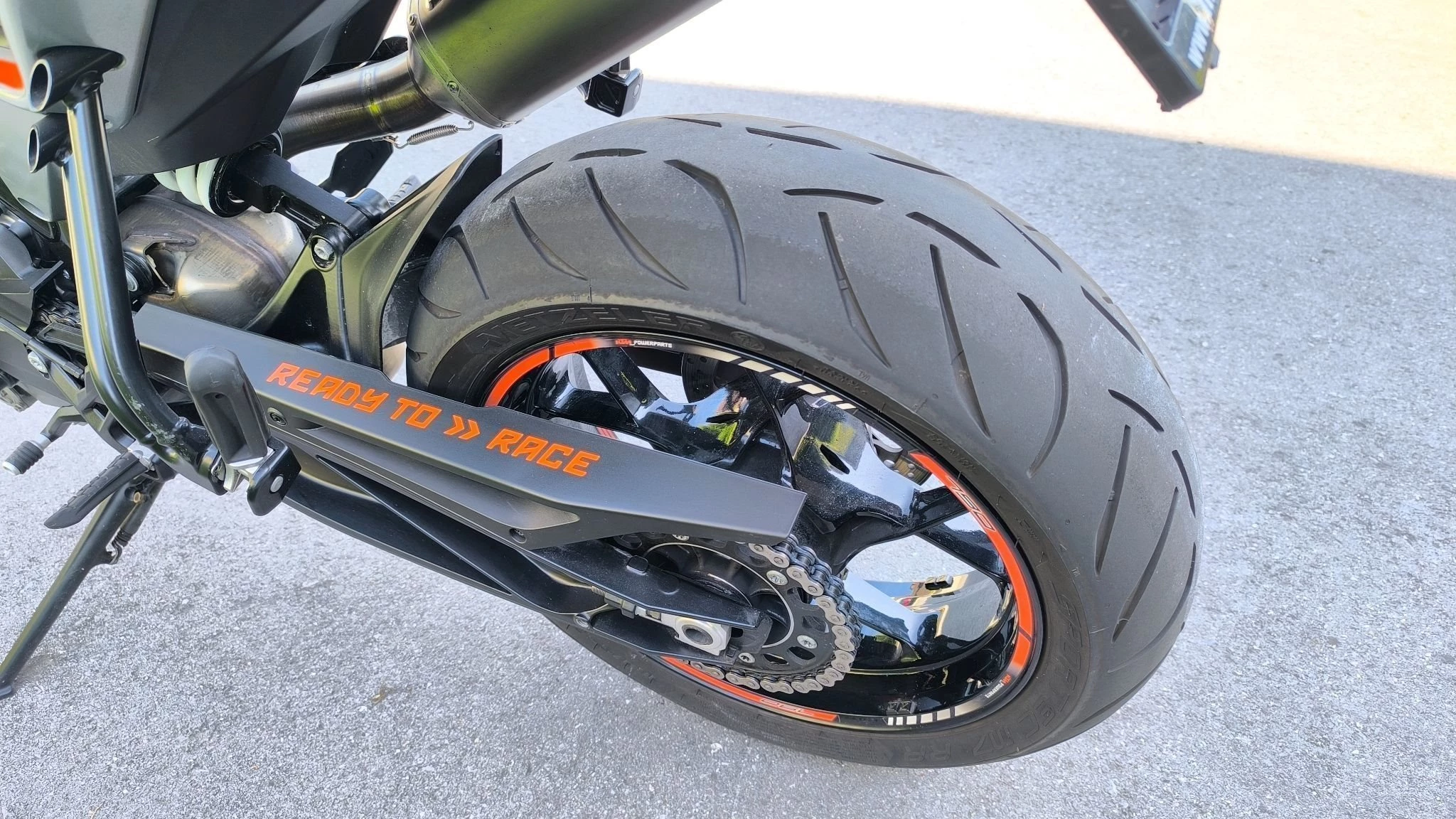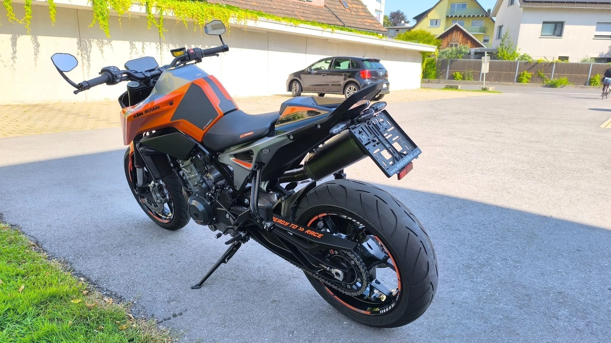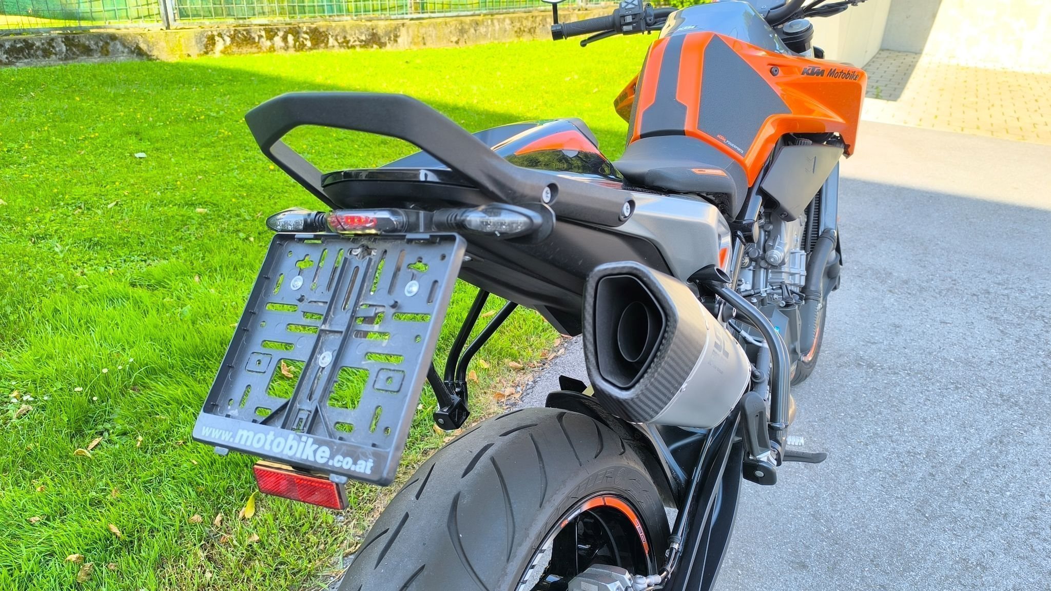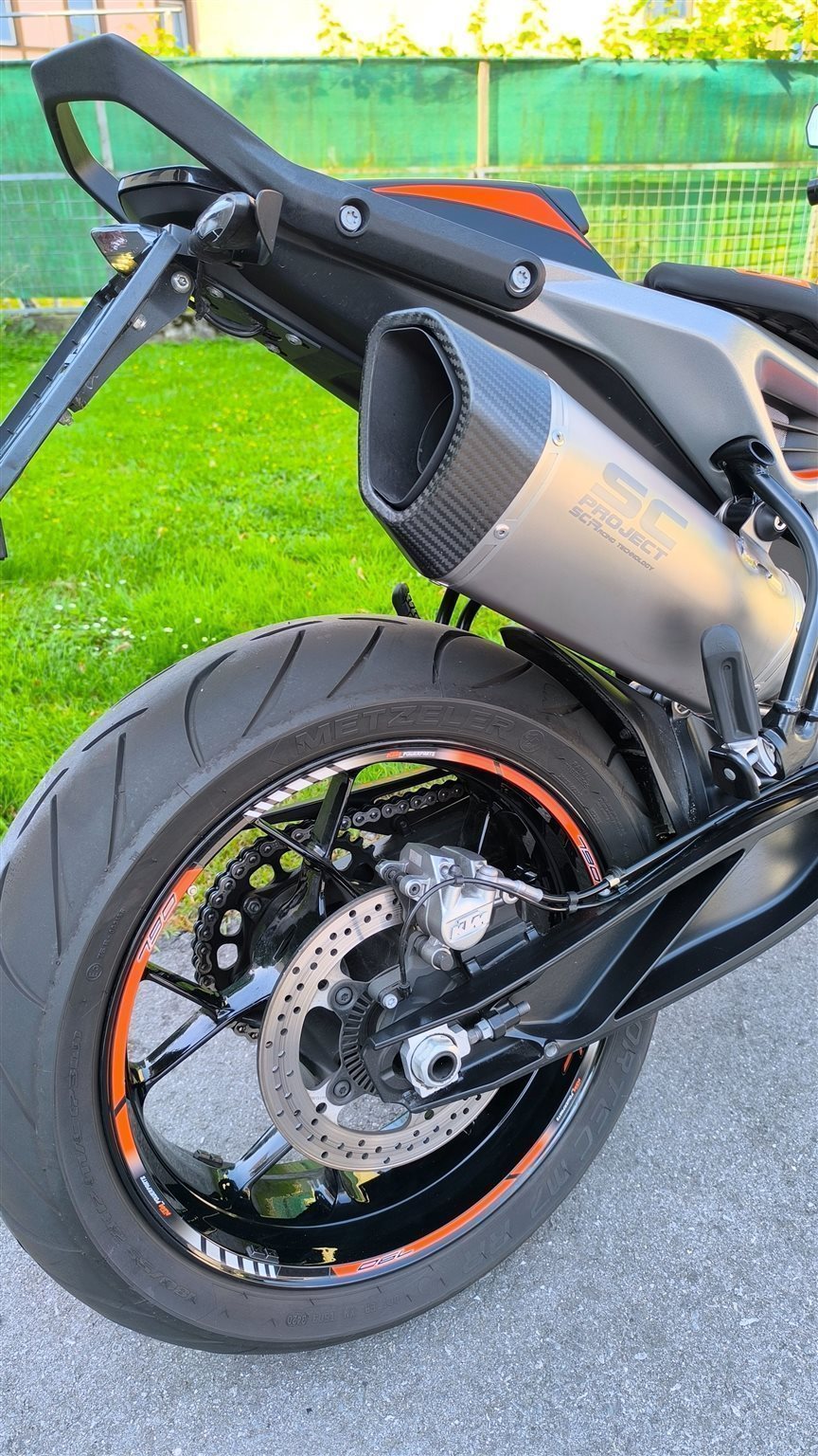 Es wurden folgende Teile umgebaut: Kurzes Heck, SC Project Auspuff, Powerparts Sitz für Fahrer und Beifahrer, Lenkerendenspiegel von Highsider, Felgenband vorne und hinten.