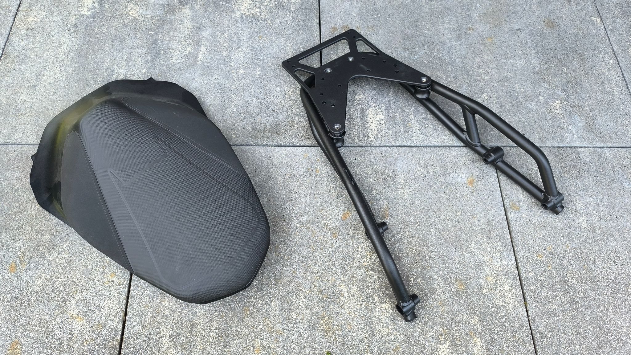 Als Zubehör ist noch die Soziusabdeckung, ein Gepäckträger für Topcase oder Tasche und ein Hauptständer dabei.