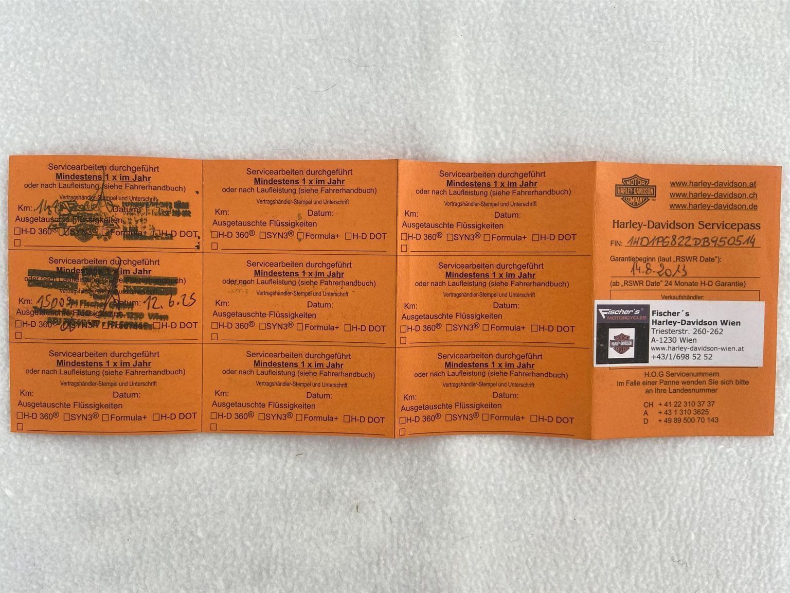 Typisierung sowie alle Arbeiten wie Jahresservices und §57 wurden ausschließlich durch autorisierten und zertifizierten HD Dealer durchgeführt, wie auch das aktuelle Jahresservice, erfolgt am 12.06.2025
