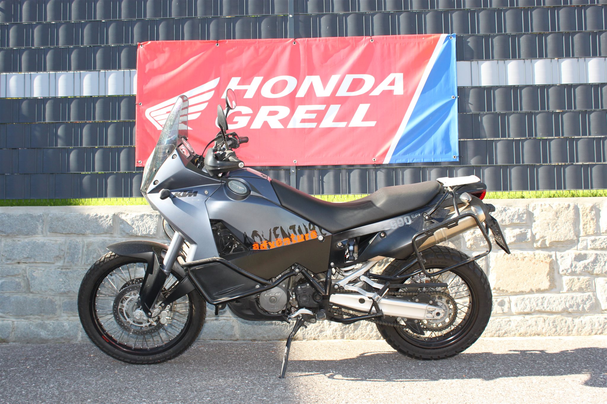 Schöne KTM 990 Adventure EFI, guter Zustand, mit Seitenkoffer, Griffheizung und Sturzbügel.