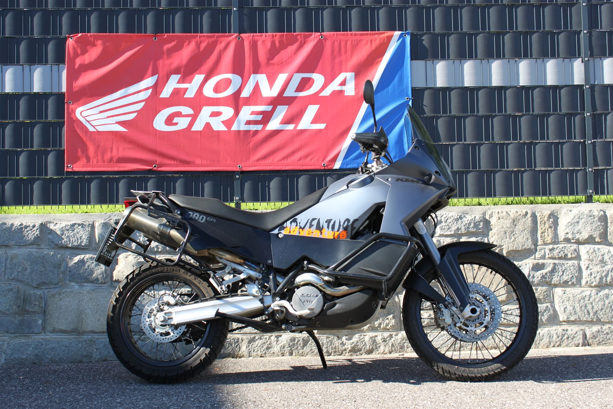 Schöne KTM 990 Adventure EFI, guter Zustand, mit Seitenkoffer, Griffheizung und Sturzbügel.