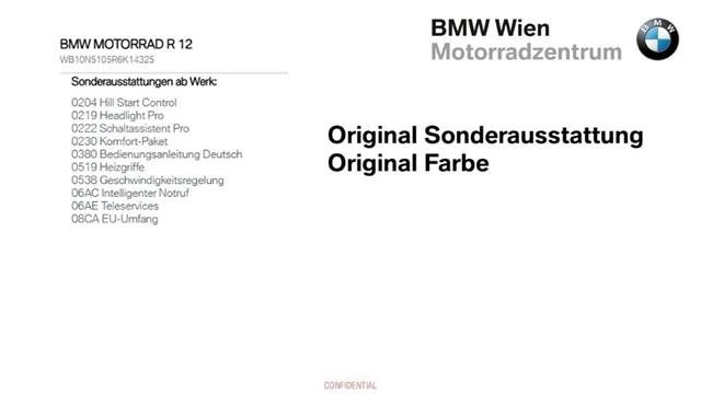 Fahrgestellnr: 6K14325 Eine schoene R12 inkl. Sonderausstattungen ab Werk siehe Bild 11 steht zum Verkauf., Gerne bieten wir auch eine entsprechende Finanzierung, Versicherung mit und ohne Kasko oder die Zustellung des Bikes nach Ihren Wuenschen an.6K14325, Sie koennen mich auch direkt kontaktieren : Christian Maurer 0676 888 755 224 oder christian.cm.maurer@bmw-wien.at,