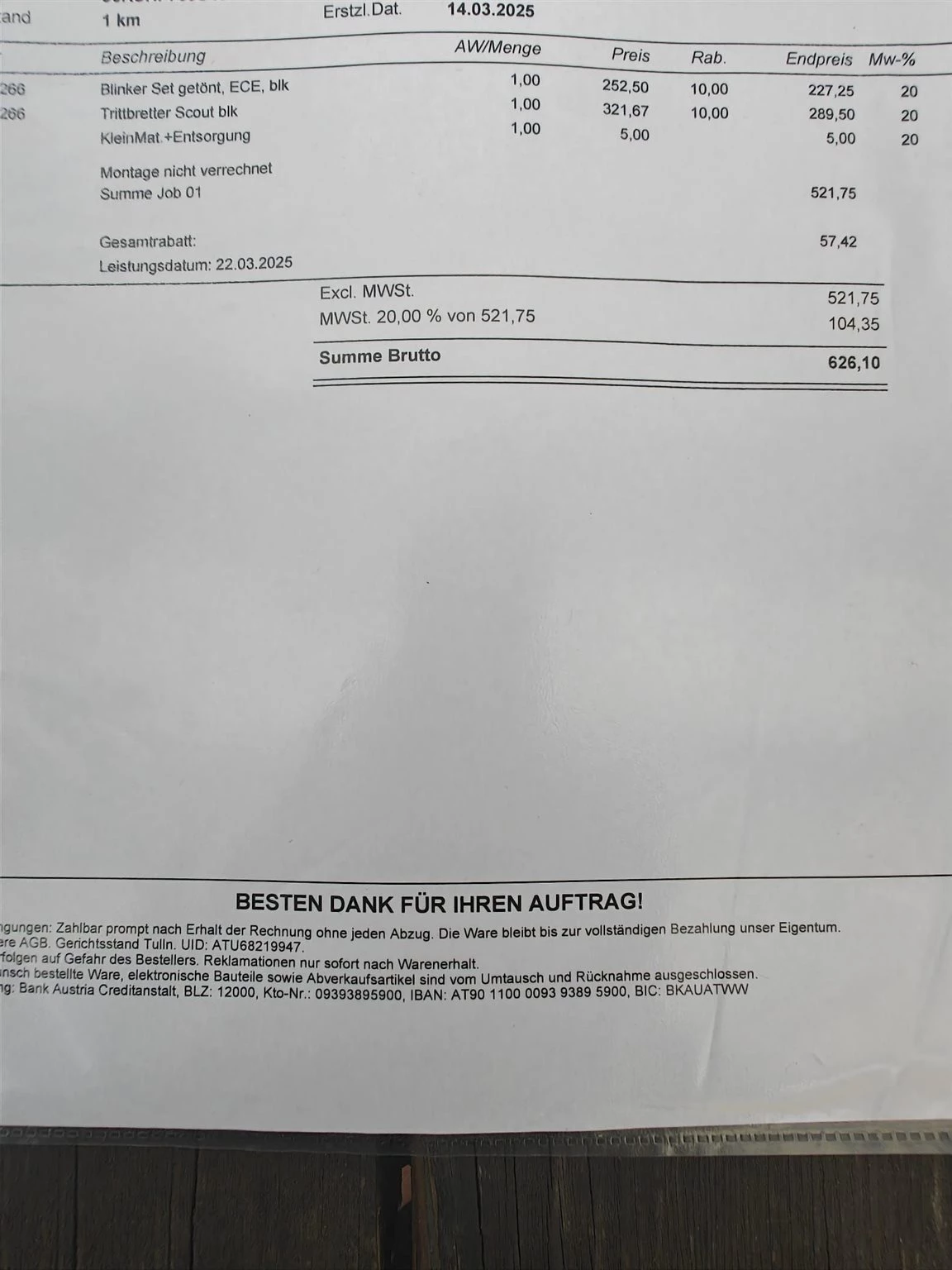 - Speditionslieferung aus dem Ausland