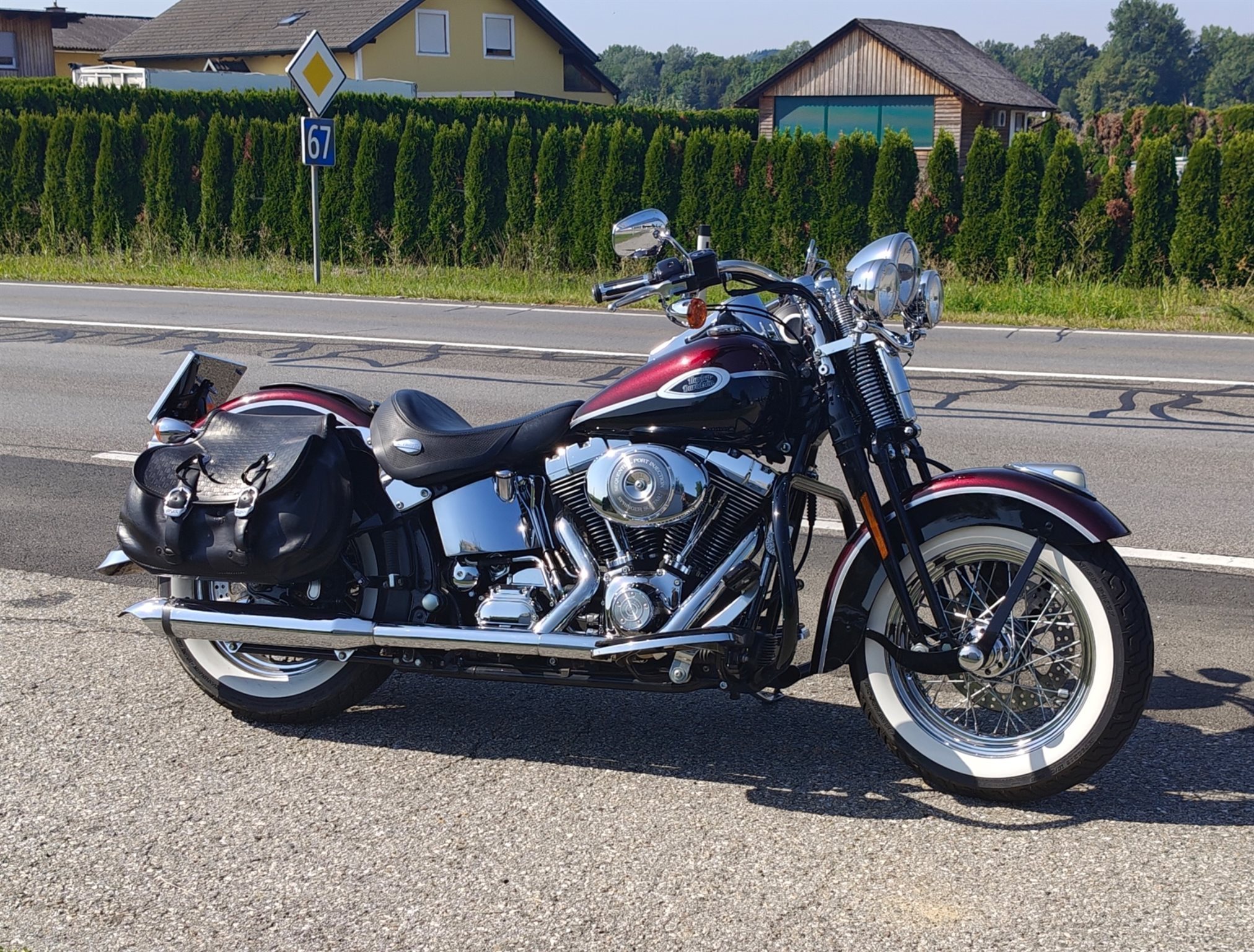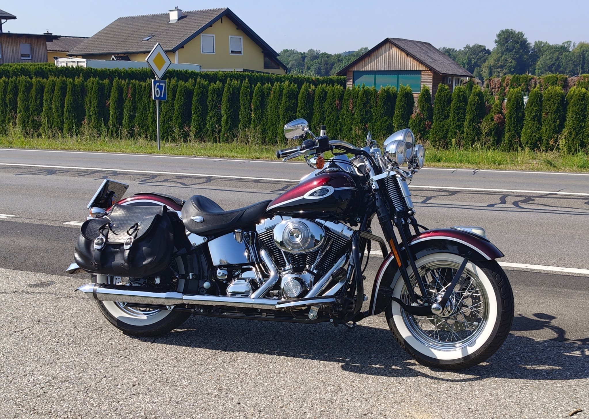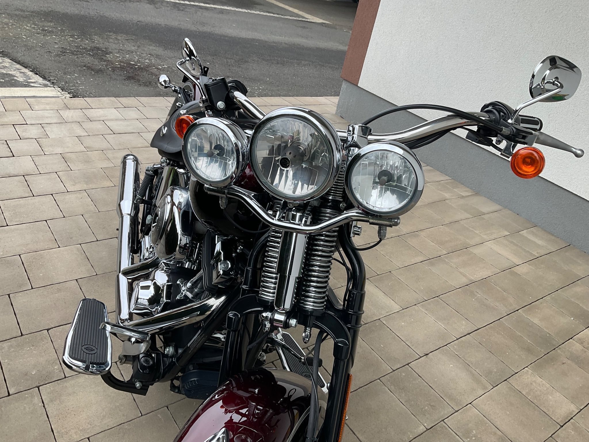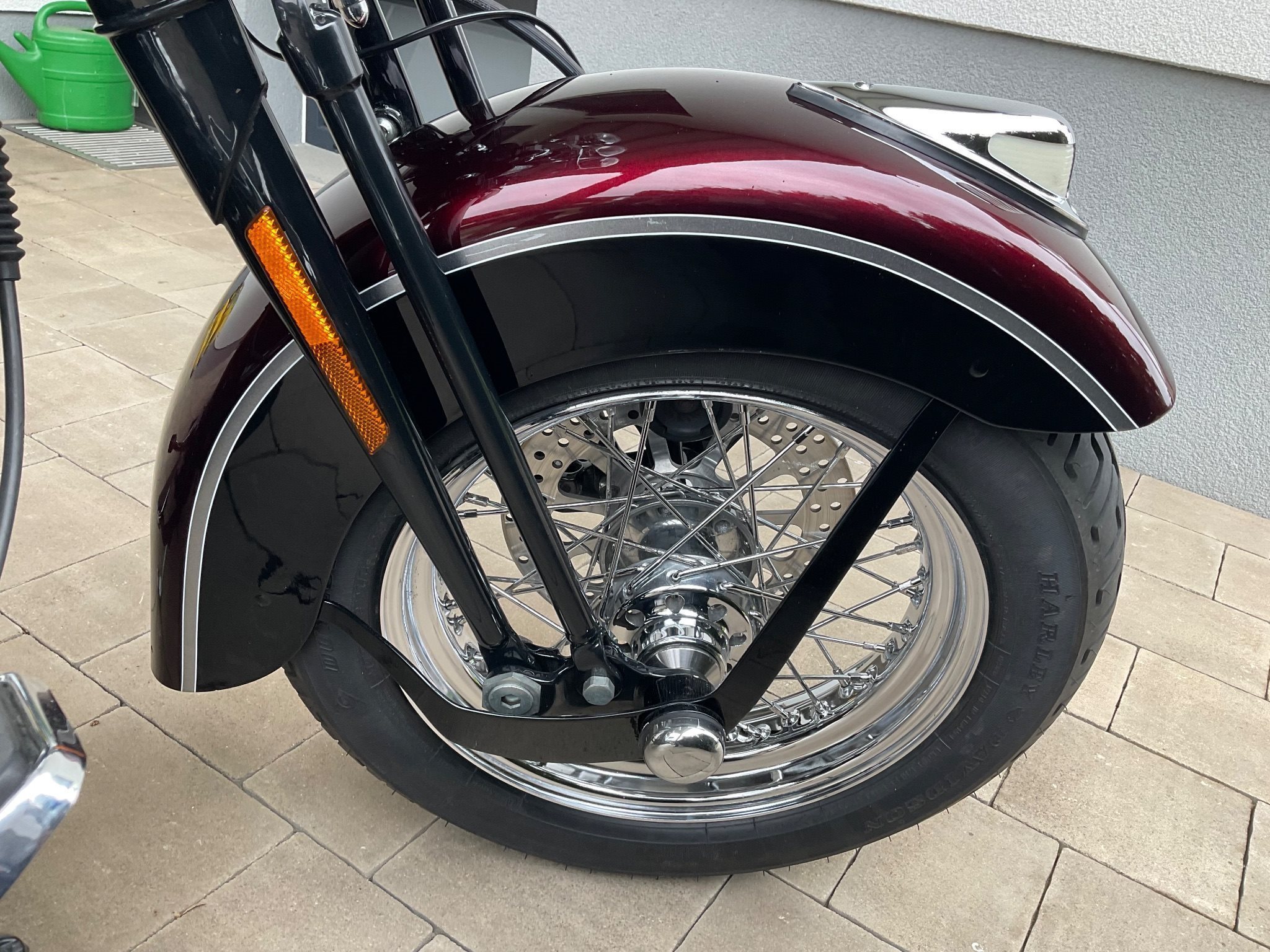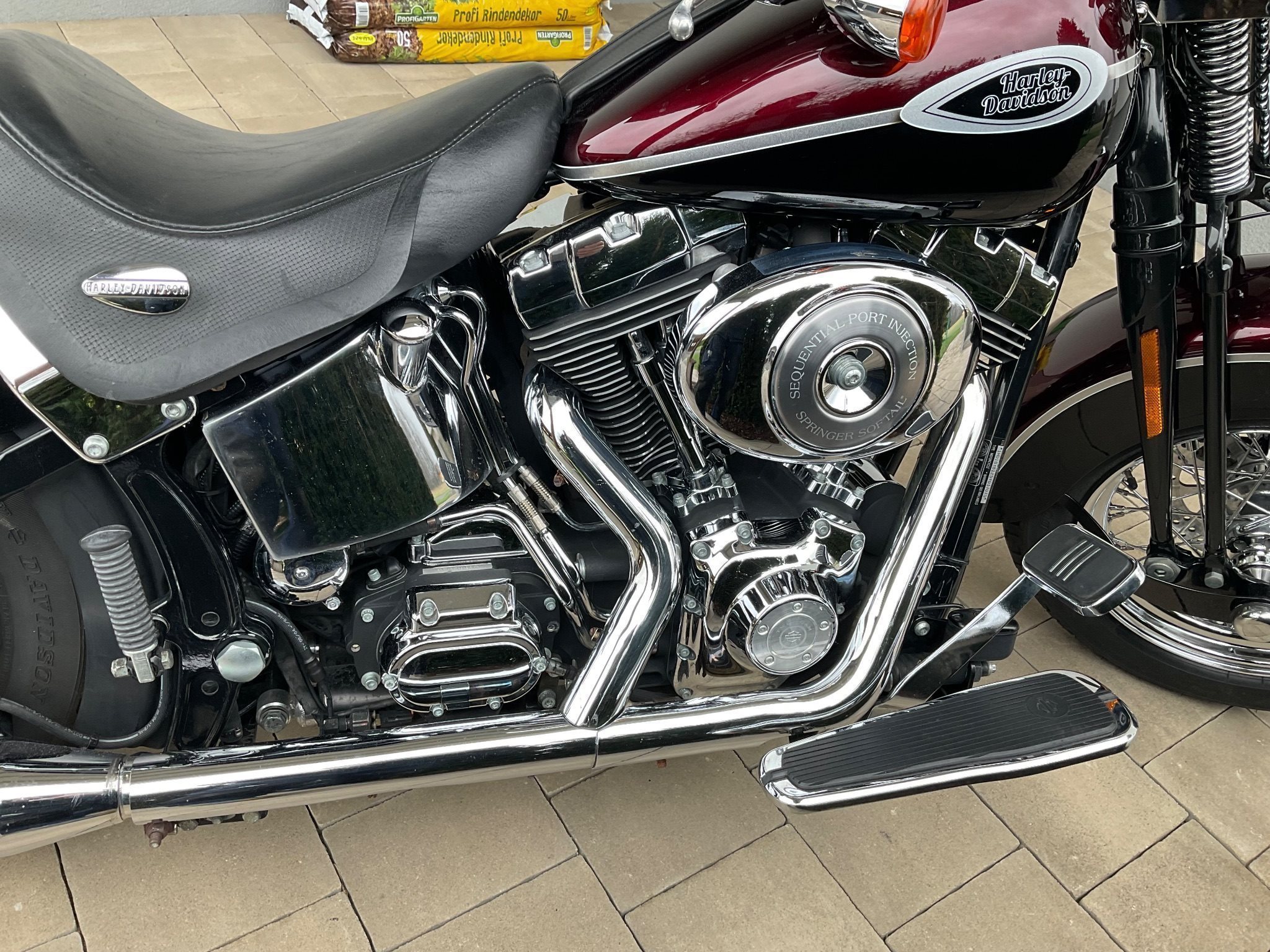Sehr schöne und hervorragend gepflegte Heritage Springer Classic. Das ist eine der letzten, welche mit der legendären Springergabel gebaut wurde. Das Chrom und der Lack sind in sehr gutem Zustand. Natürlich auch dem Alter entsprechend geringe Gebrauchsspuren vorhanden. ( Wurde ja auch gefahren).