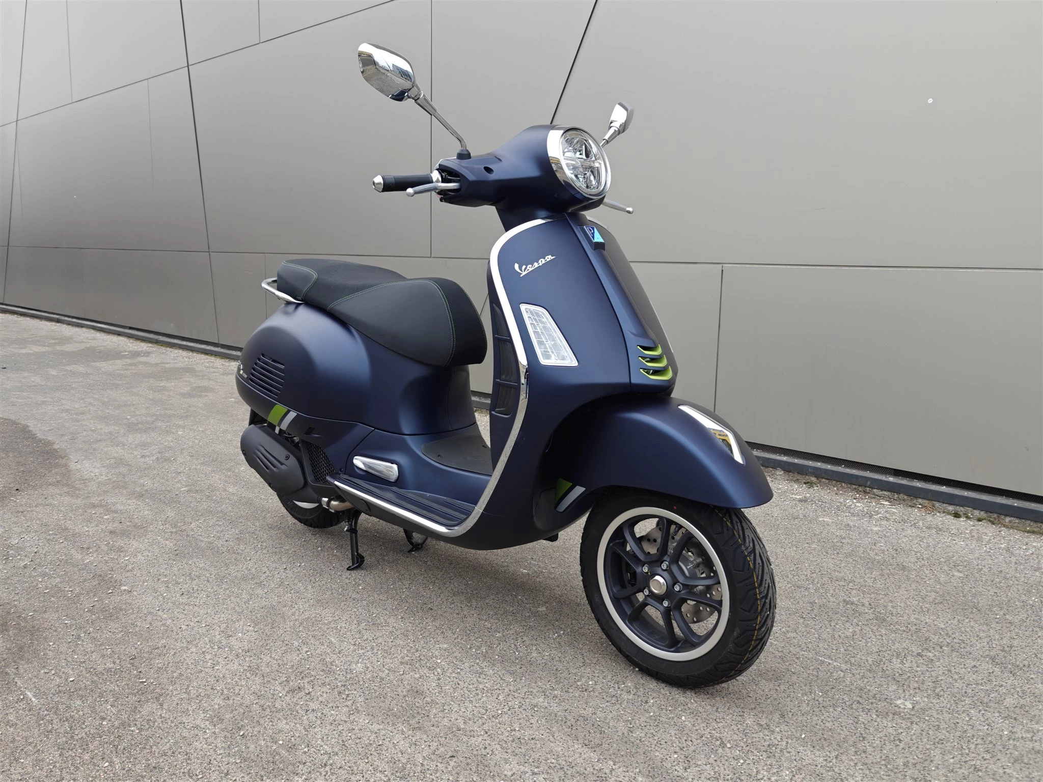 Das unverwechselbare, gewinnende Aussehen der GTS, kombiniert mit einzigartiger Attraktivität und purer Technologie. Die Vespa GTS SuperTech besticht durch intensive Farben in glänzendem und mattem Finish, die das hochtechnologische, anspruchsvolle Design des Rollers voll zur Geltung bringen. Chromlinien und fluoreszierende Details unterstreichen den futuristischen Kern des Rollers, während der schwarze Sattel mit Kontrastnähten einen zusätzlichen Hauch von Eleganz verleiht.