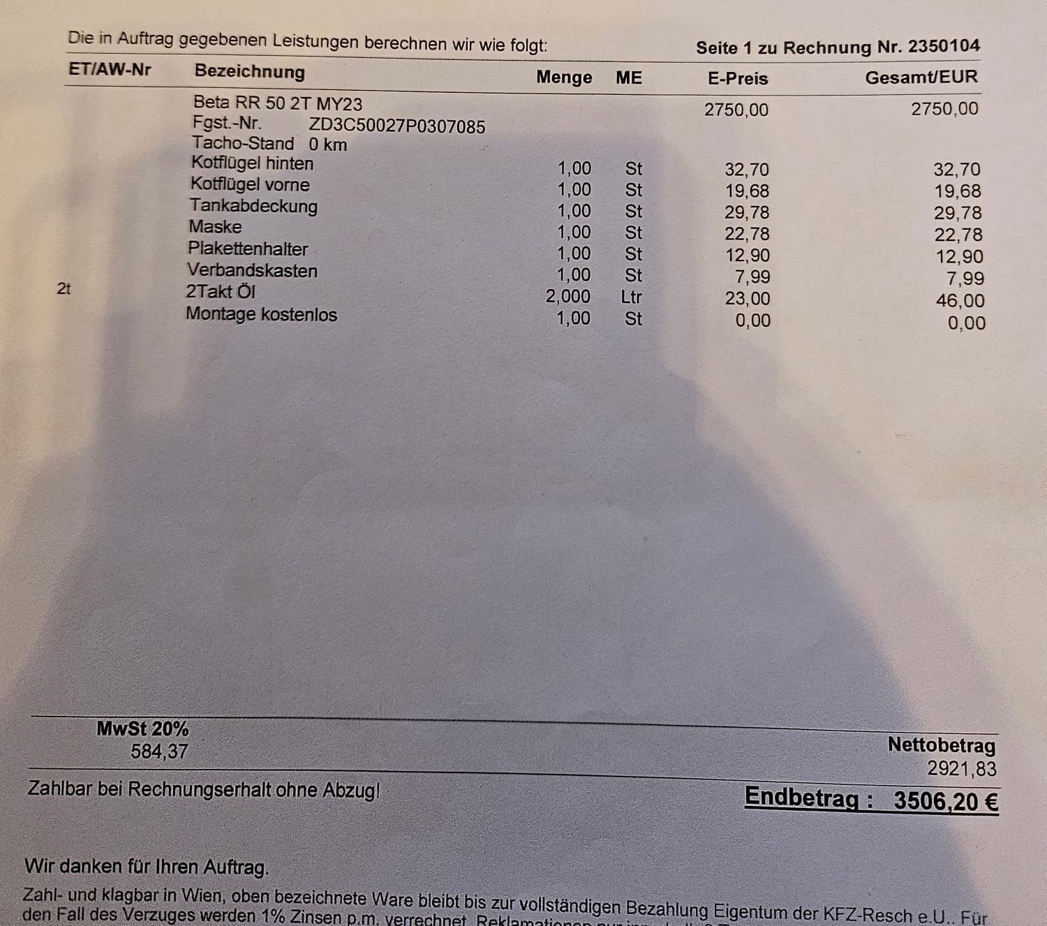 - Speditionslieferung aus dem Ausland
