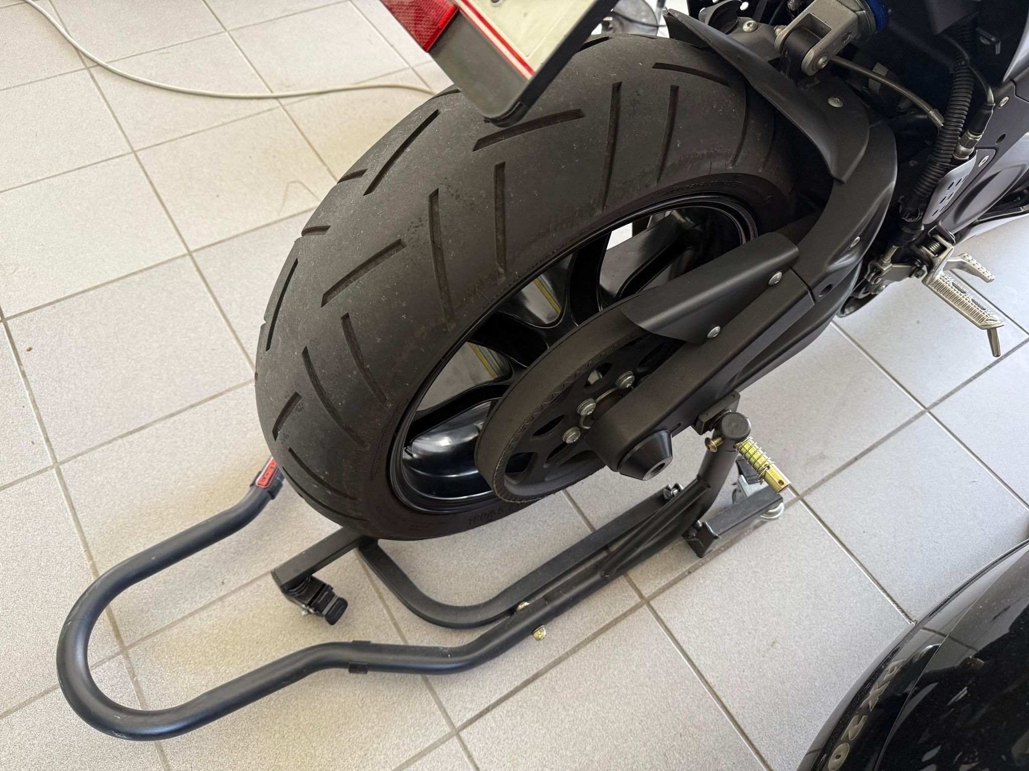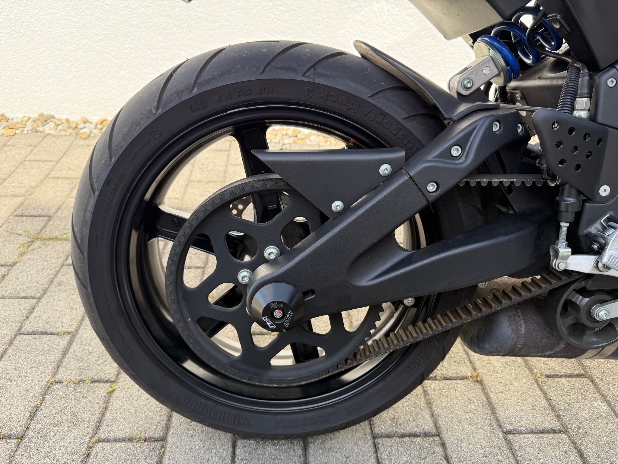 Ich gebe eine zweite Sitzbank, einen 2. Tank und einen Montageständer dazu, sie kann in 2 Minuten in eine komplett schwarze Optik umgebaut werden.