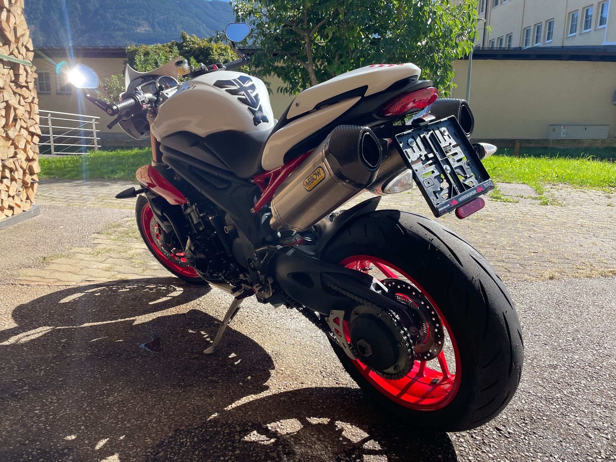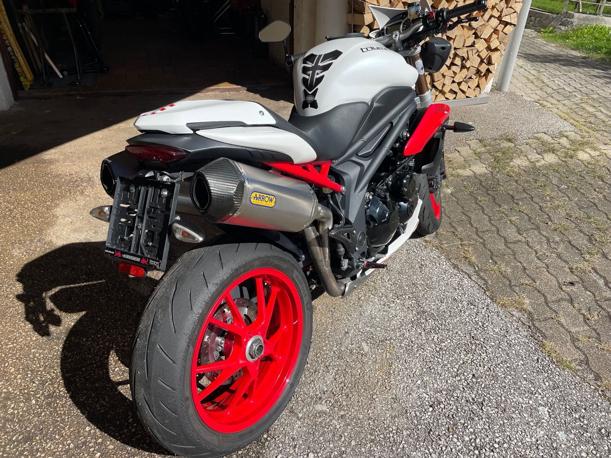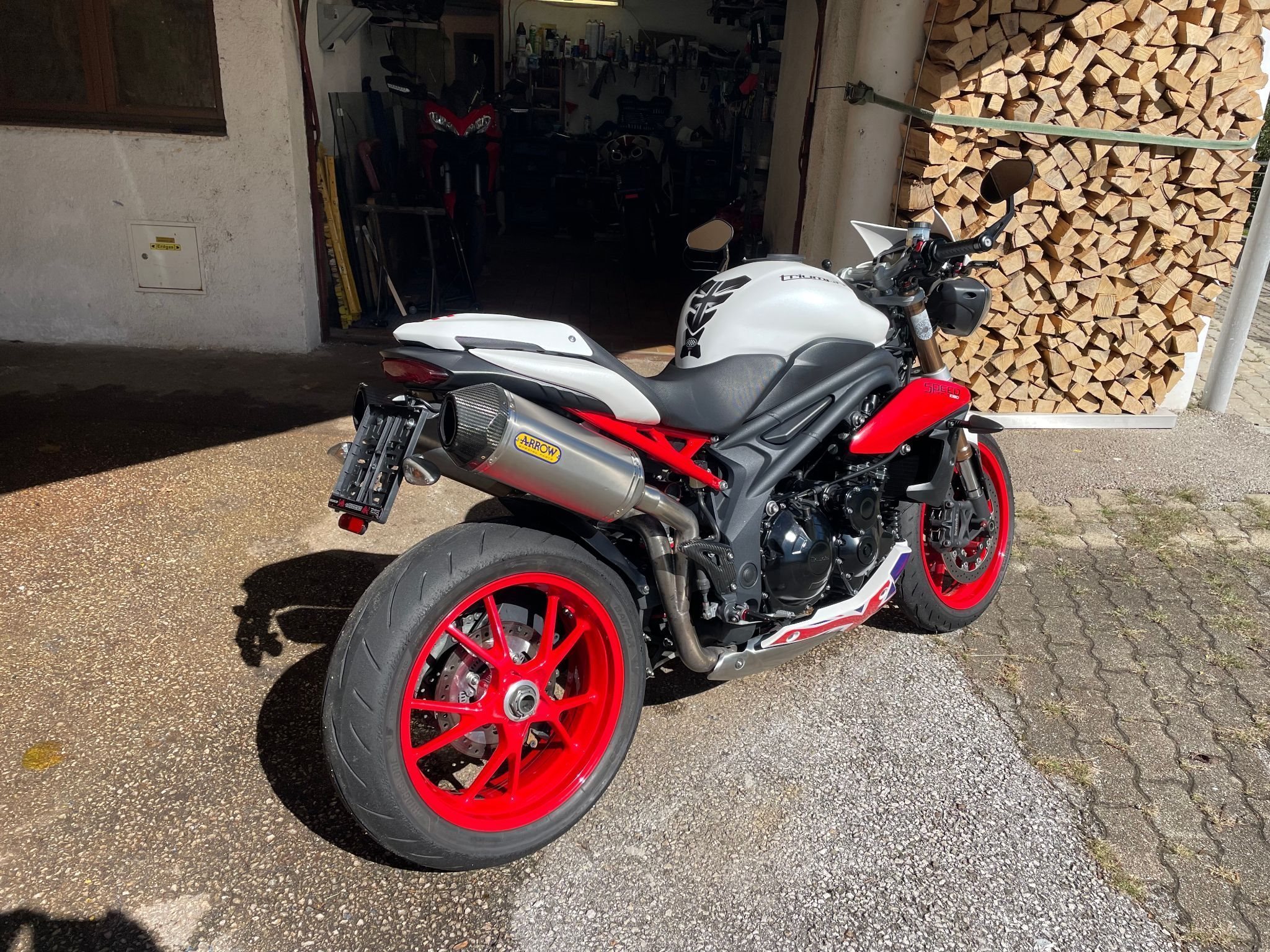 Verkaufe hier meine Speed Triple in außergewöhnlich gepflegtem Zustand, Unfallfrei, Kein Wartungsstau, Pickerl 04.26, Reifen und Antriebssatz haben gerade mal 500 Km. drauf, ÖL und Filter neu, Gabel neu serviciert, Arrow Sportauspuff montiert, sehr schöner aber nicht zu lauter Sound, alle Originalteile in neuwertigem Zustand sind dabei! Motorrad ist noch angemeldet auf Wechselkennzeichen! Zustellung evtl. möglich!