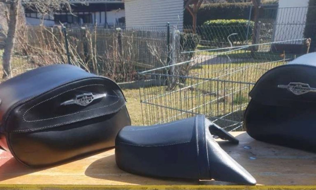 ebenso Zündkerzen mit Luftfilter. Originale Satteltaschen und Sozius-Sitz