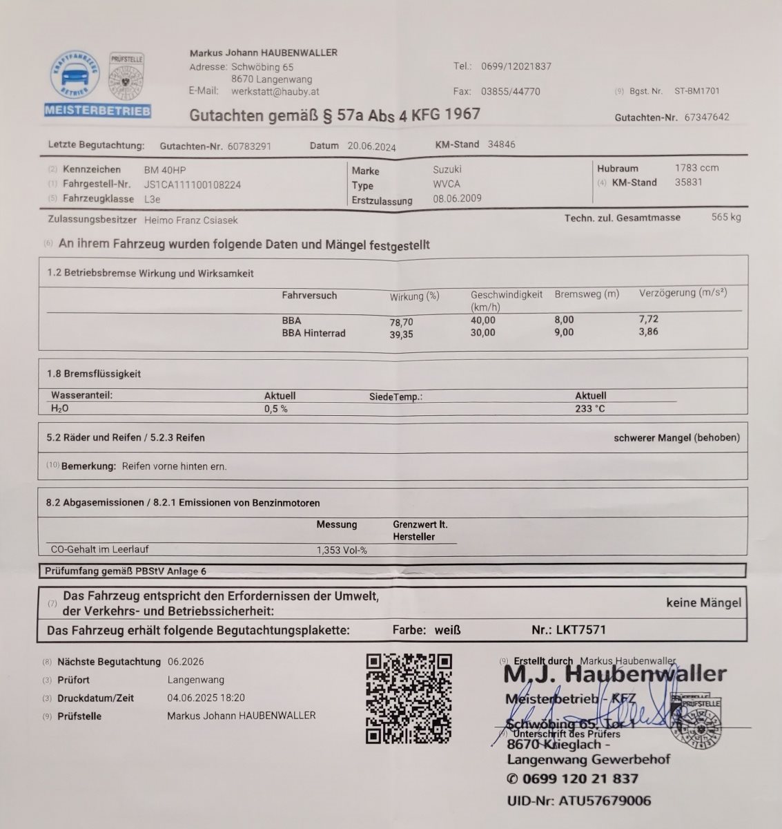 Lackierung, Service gepflegt. Pickerl bis 06.2026 plus 4 Monate, 36000er Service neu, Neue Reifen von Bridgestone, 06.2025 montiert (30 Km gefahren) Vorne 130/70/18, Hinten
