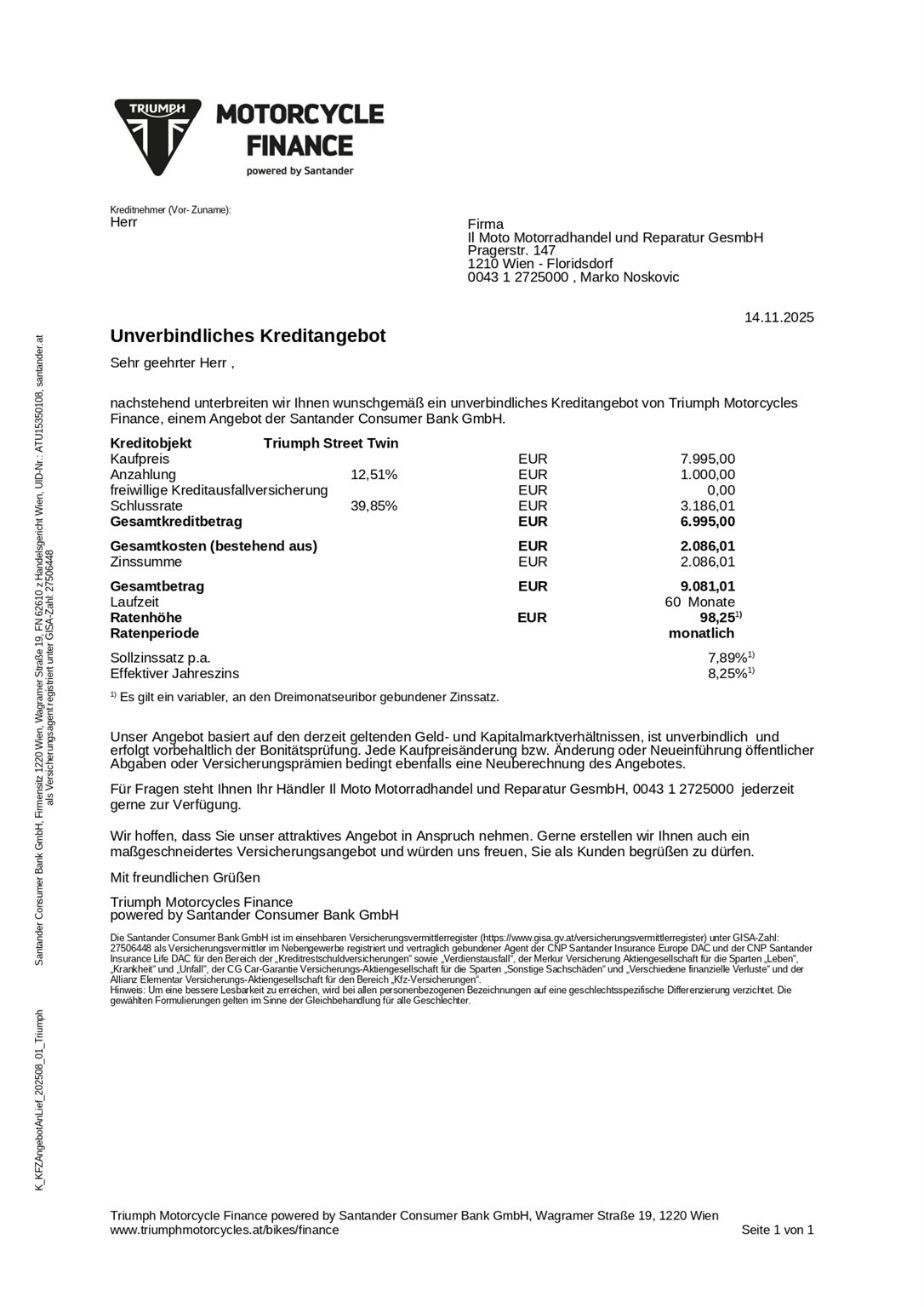 Wir erstellen dir gerne ein Finanzierungsangebot, auch ohne Anzahlung mit monatlicher Rate oder 1/3 Finanzierung. Kein Kasko nötig.