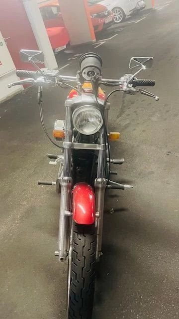 ich habe die Sportster 1997 von Fischer's Harley Davidson als Vorführmotorrad gekauft, seither ist es in meinem Besitz, die Kilometerangabe ist korrekt, es wurden einige Veränderungen vorgenommen, andere Blinker, Spiegel, Fußrasten, Luftfilter, neue Sitzbank etc. und vor ca 500km S&S Zylinder Kolben zur Leistungssteigerung eingebaut und vor ca 80 km Lichtmaschine und Kupplung ersetzt, Reifen hinten und vorne sind ganz neu, eine Reservesitzbank in schwarz ist vorhanden ebenso ein 2. Originaltank , da der Tank eine Delle hat