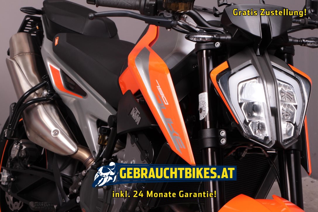 790er Duke, in auffälligem Silber-Orange. ABS, aus Erstbesitz, service- und garagengepflegt. Zuverlässiges Naked Bike mit viel Charakter und kernigem Fahrspaß. Gepflegter Zustand, ideal für Einsteiger wie auch erfahrene Biker, die Wert auf Originalität und gute Wartung legen.