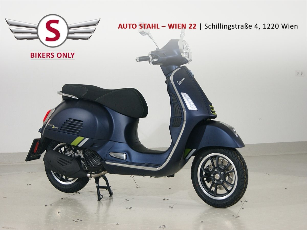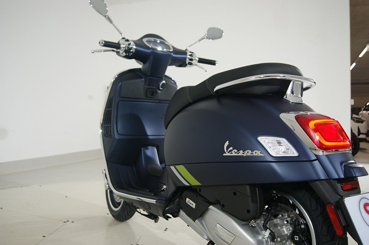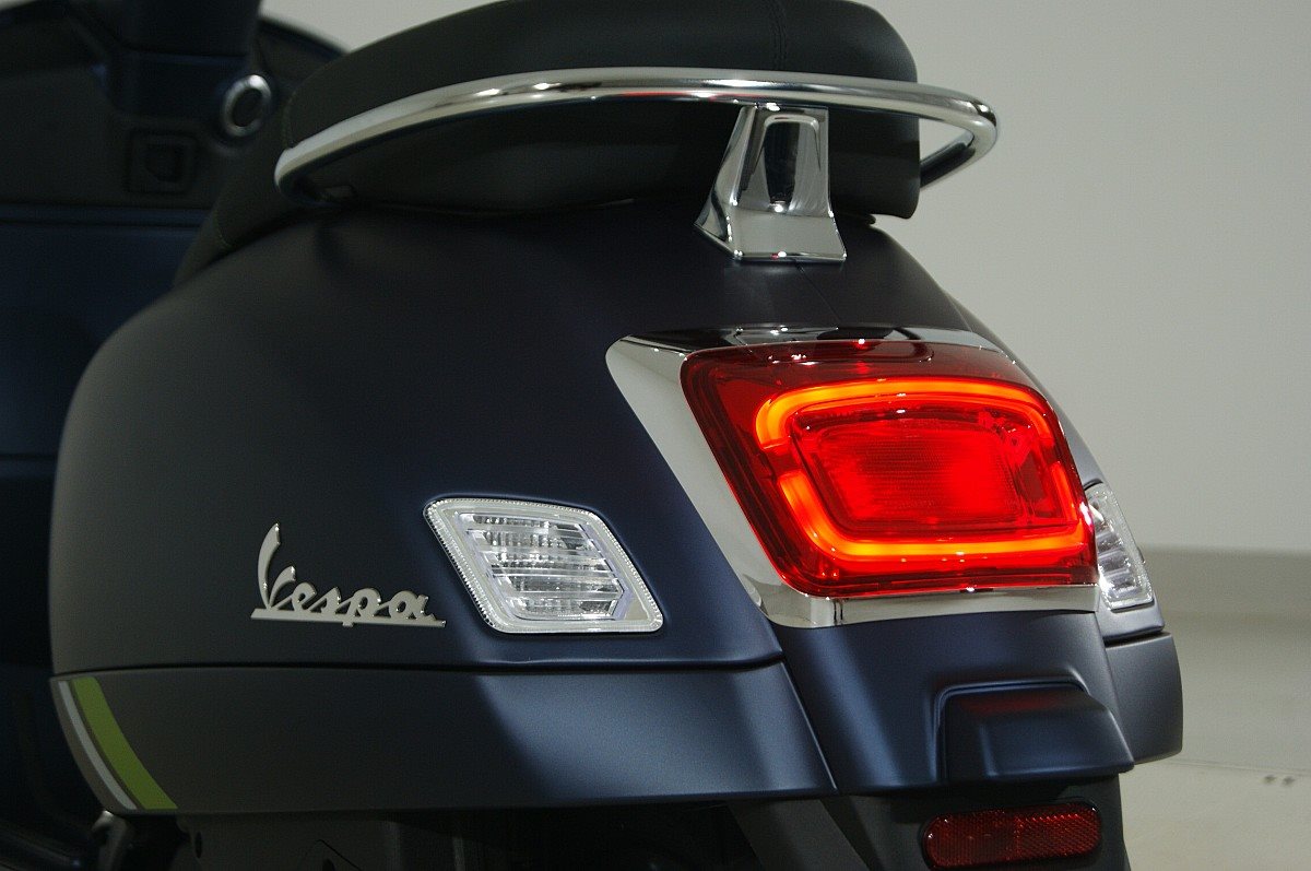 Die Schönheit der TechnikDas unverwechselbare, gewinnende Aussehen der GTS, kombiniert mit einzigartiger Attraktivität und purer Technologie. Die Vespa GTS SuperTech besticht durch intensive Farben in glänzendem und mattem Finish, die das hochtechnologische, anspruchsvolle Design des Rollers voll zur Geltung bringen. Chromlinien und fluoreszierende Details unterstreichen den futuristischen Kern des Rollers, während der schwarze Sattel mit Kontrastnähten einen zusätzlichen Hauch von Eleganz verleiht.