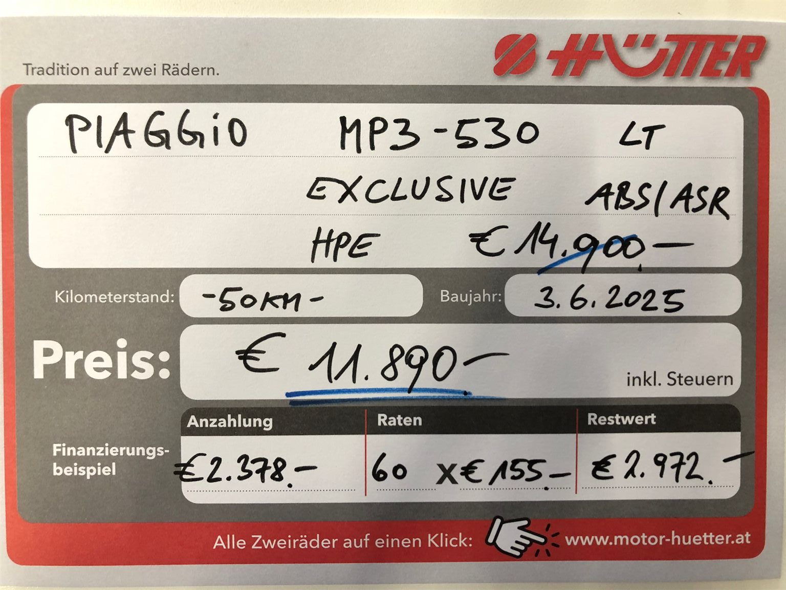 Du erreichst uns unter 03136 93036 oder per Mail unter office@motor-huetter.at