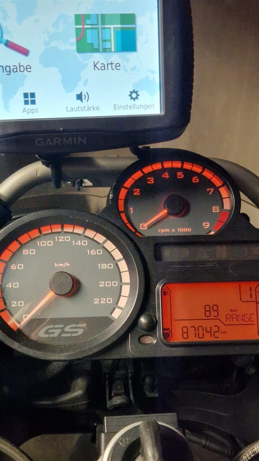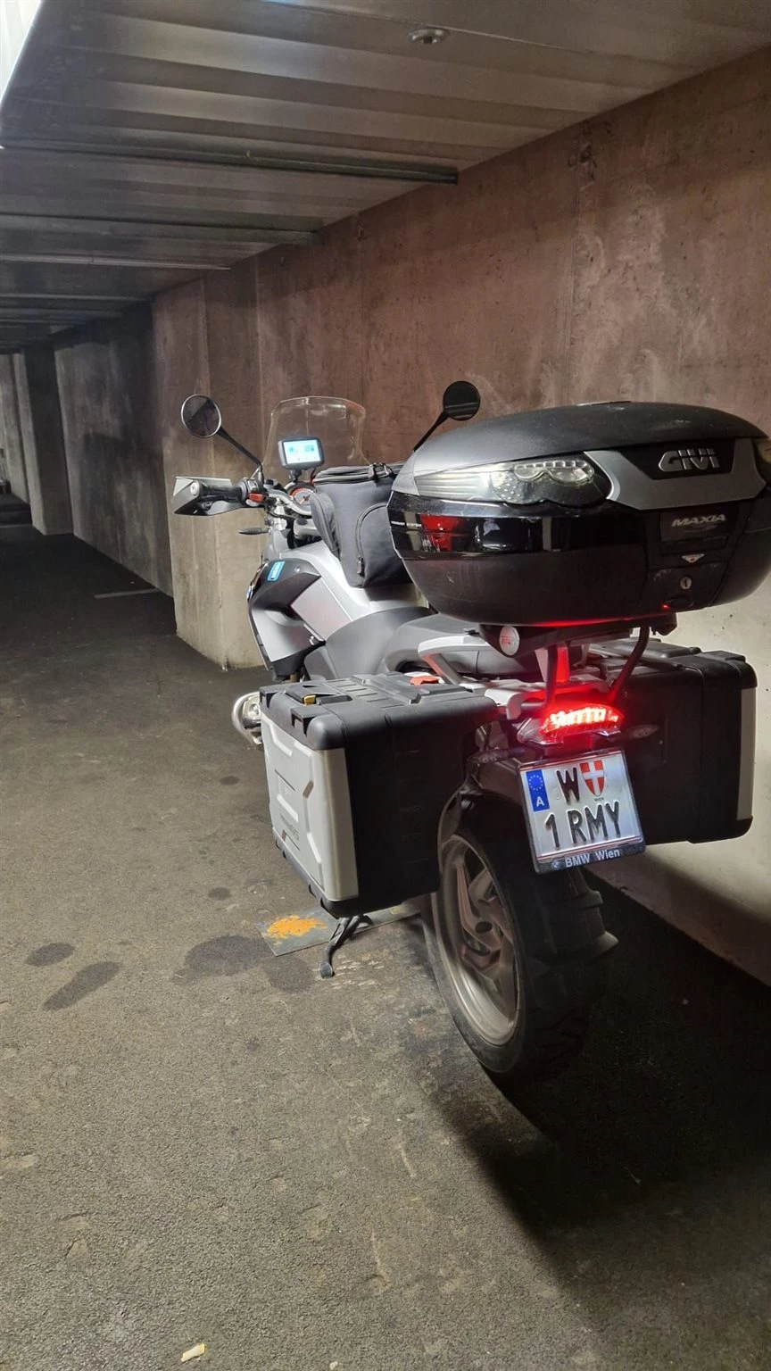Zubehör:" Orig. Koffer li. u. re., Givi 55 L Topcase + Reserveschloss, 3 Stk. Innentaschen, Sturzbügel, Bordsteckdose, Garmin Zumo 595 LM kompett dh. Inkl. Motorrad - u. Pkw Halterung.