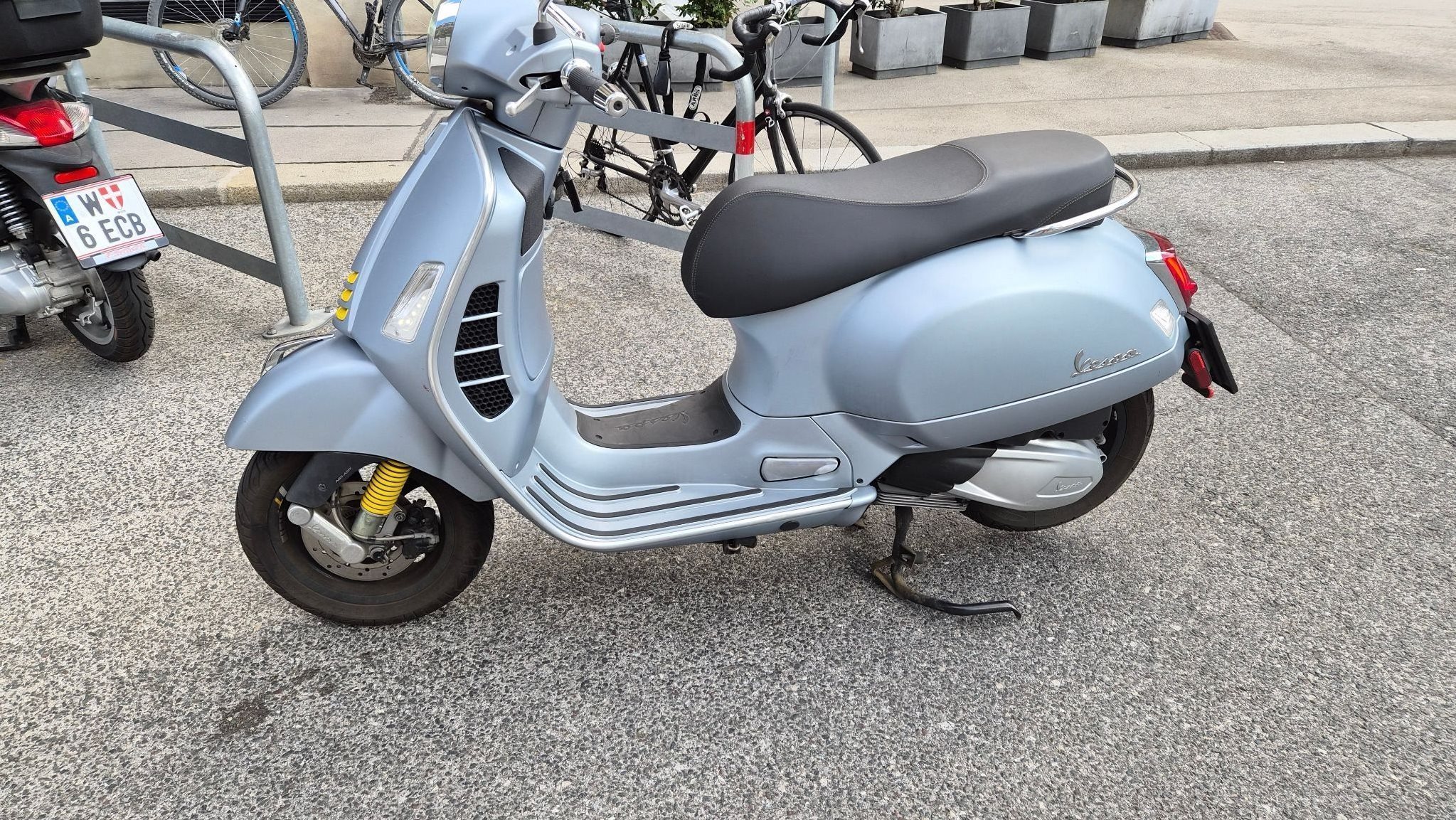 Fahrzeug ist sturz- und unfallfrei, wurde jedoch einmal von einem einparkenden Auto umgestoßen, dadurch weist es rechts hinten Kratzer im Lack auf (siehe Foto). Pickerl geht bis 05/2027