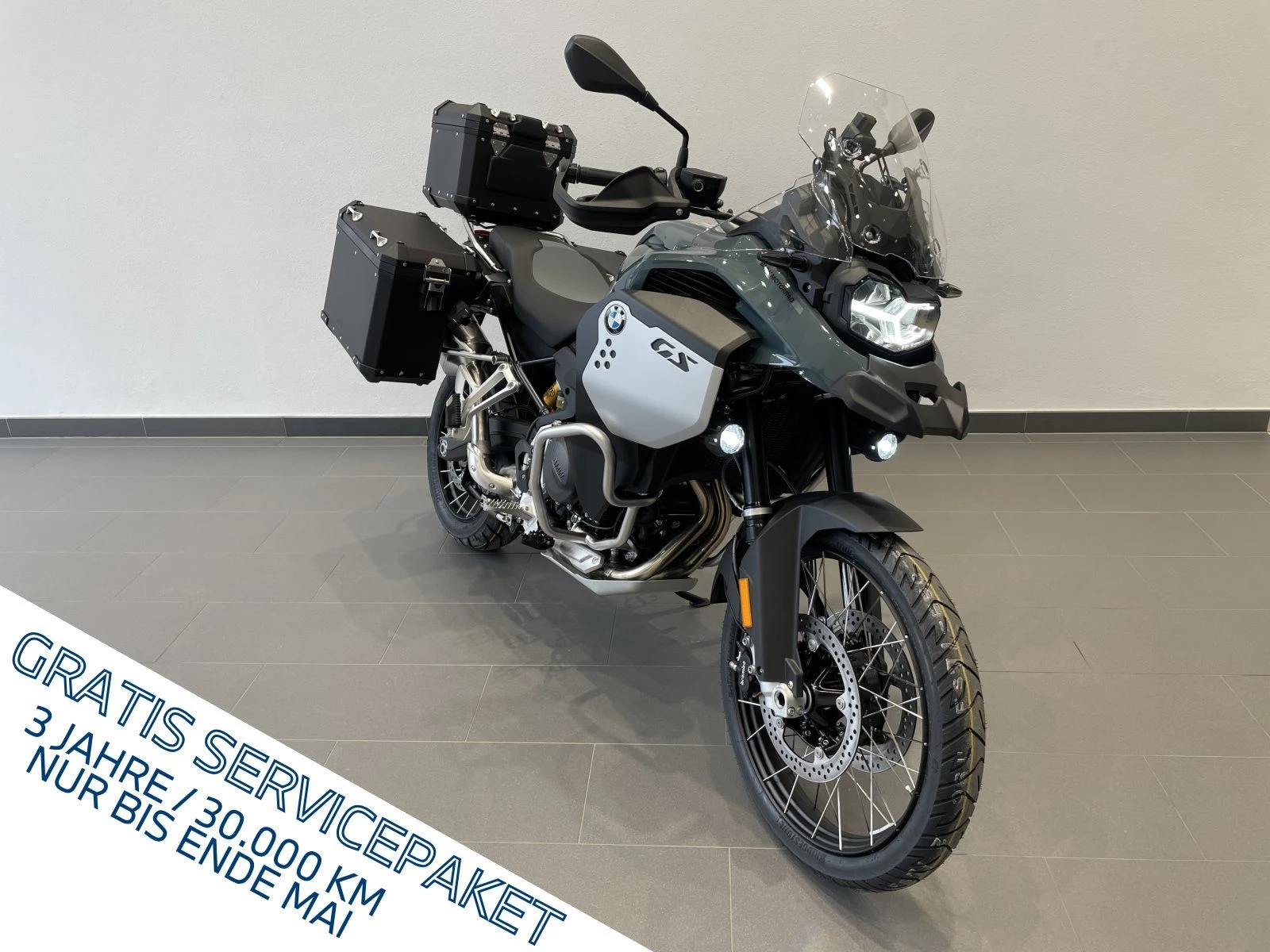 Bei Kaufvertrag und Fahrzeugabholung bis Ende Mai 2026 schenken wir Ihnen 3 Jahre Gewä,hrleistung 3 Jahre / 30.000 im Servicepaket 5 Jahre Roadside Assistance und Mobilitä,tsservices Jetzt schnell sein und von der GS Premium Kampagne fü,r alle neuen BMW F 900 GS, F 900 GS Adventure, R 1300 GS und R 1300 GS Bikes profitieren. Sonderausstattungen ab Werk:, , - 023A Ride Pro, , - 018A M Endurance Kette, , - 0193 Keyless Ride, , - 0222 Schaltassistent Pro, , - 0224 Fahrmodi Pro, , - 0272 Vorbereitung für Navigationsgerät, , - 0538 Temporegelung, , - 0562 Zusatzscheinwerfer, , - 0680 Kofferhalter für Alukoffer, , - 0191 Dynamic ESA, , - 0636 Hauptständer, , - 06AC Intelligenter Notruf, , - 06AE Teleservices, , - 07A6 Verl.Mängelbeseitigungsansprüche +1 Jahr, , , , . 3 Jahre Gewährleistung , , . 3 Jahre / 30.000 km Servicepaket , , . 5 Jahre Roadside Assistance und Mobilitätsservices , , . Attraktive Premium-Finanzierung, , , , Preis excl.Kofferset!, Irrtümer und Zwischenverkauf vorbehalten