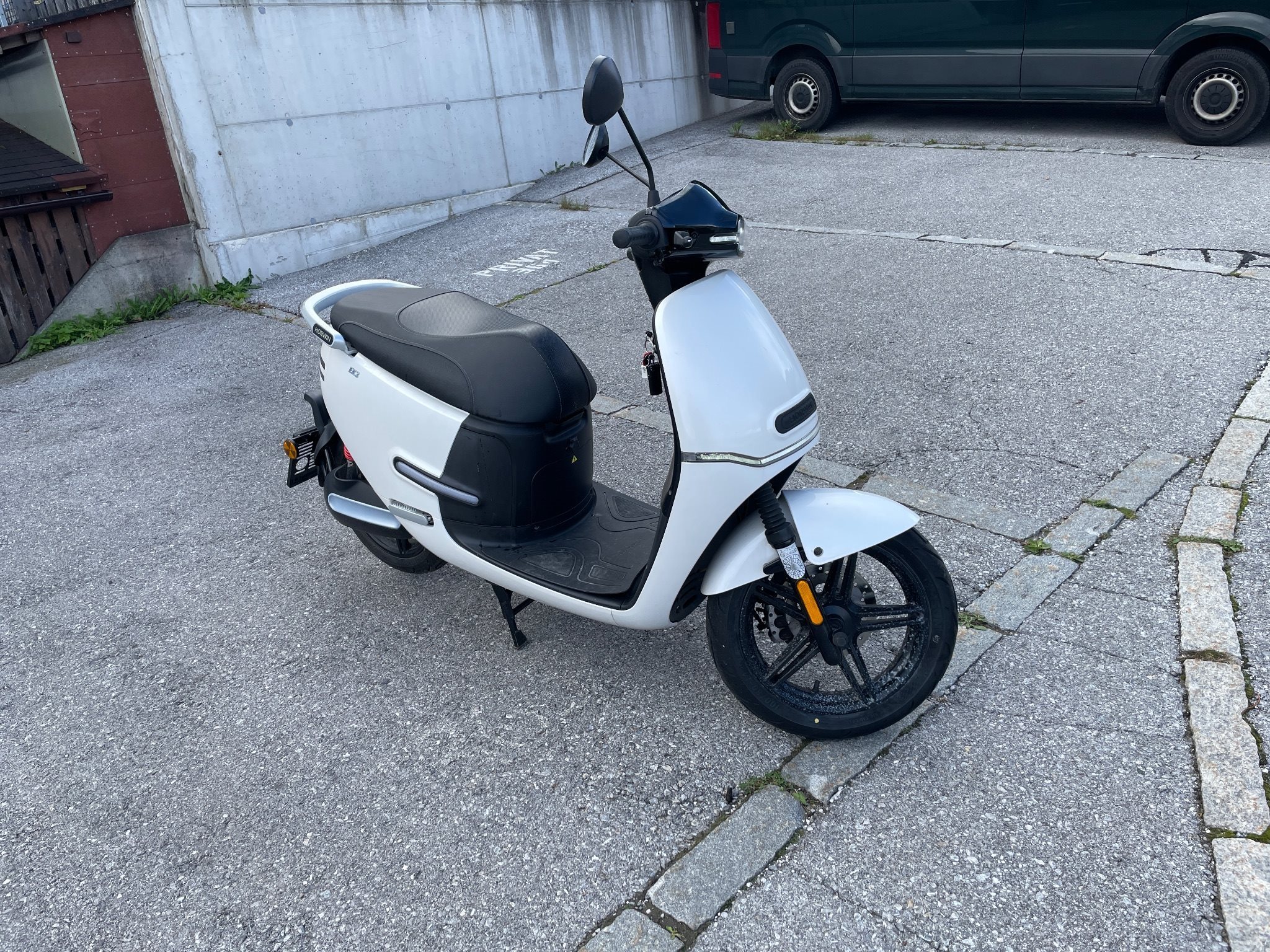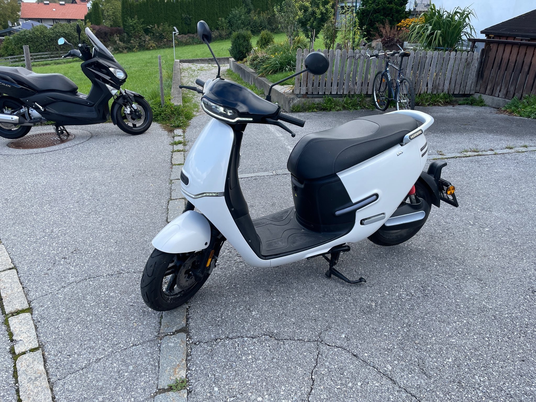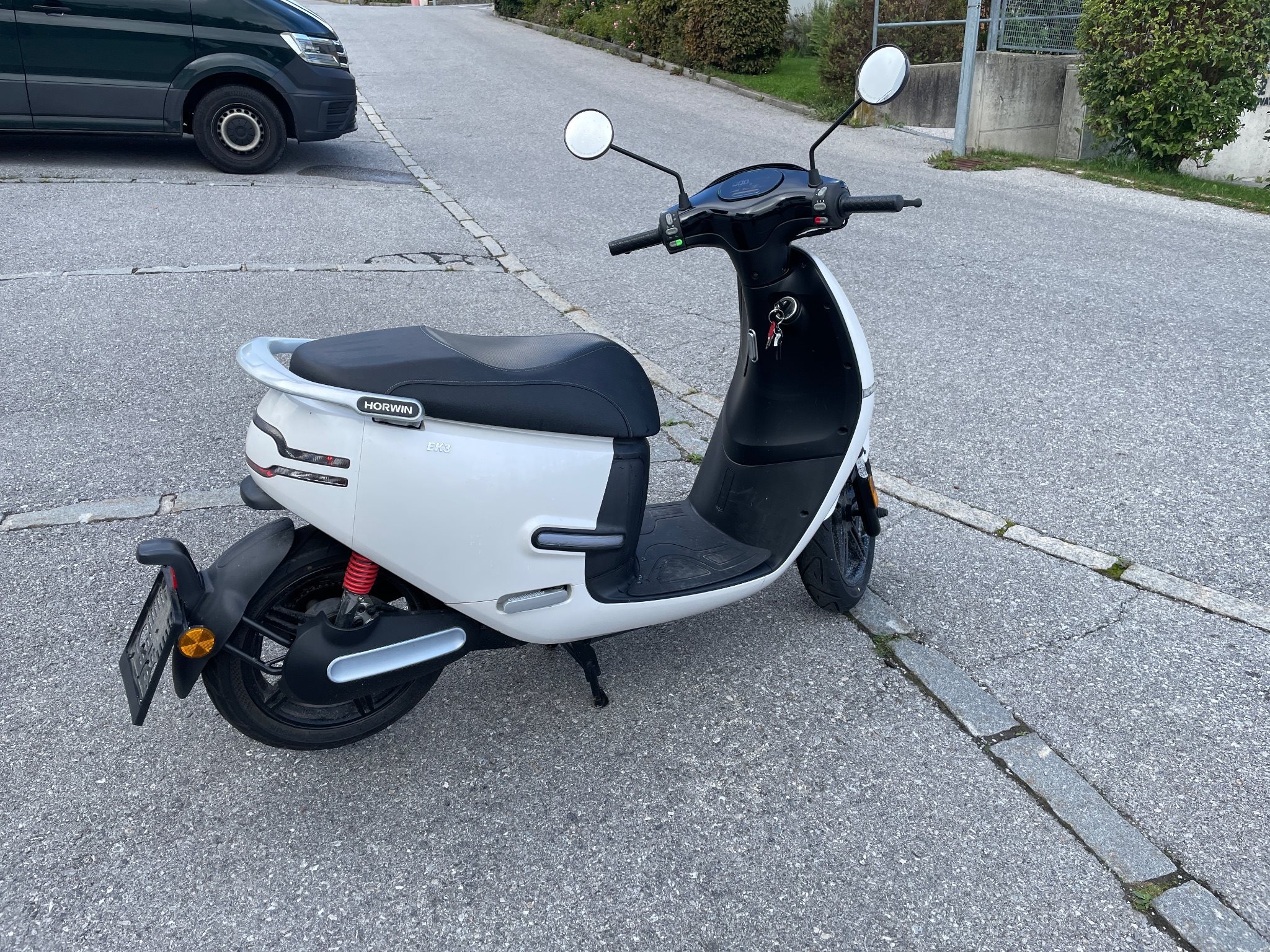 Verkaufe meinen Horwin ek3 Elektroroller, 125 ccm klasse, also man braucht keinen A Schein, wohne im hügeligen Gelände wodurch die Reichweite für mich nicht ausreicht. Laut Hersteller hat ein Akku bei 45 km/h auf der Geraden eine Reichweite von 80 km, bei mir auf stärkster Stufe 100 km/h nur ca. 35 km Reichweite. BJ. 2022 , 2 Akkus 72 wh, 2200 km, einige Reparaturen stehen an fürs Pickerl: Reifen hinten muss gewechselt werden, Bremsflüssigkeit wechseln, Radlager vorne wechseln, Kette rostig, deswegen der unschlagbare Preis von: 2000 Euro inkl, 2 Akkus (Neuwert 5.000 Euro