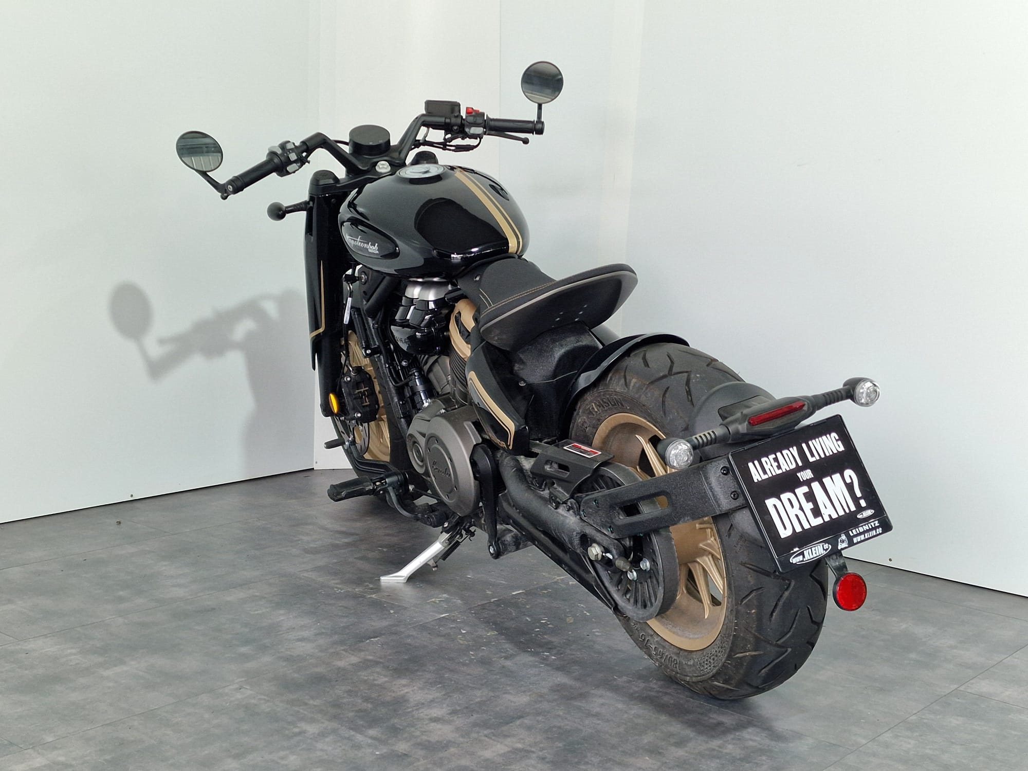 - Markante Optik: zieht viele Blicke auf sich, besonders in der Stadt, breiter 180er-Hinterreifen und stimmige Bobber-Ästhetik