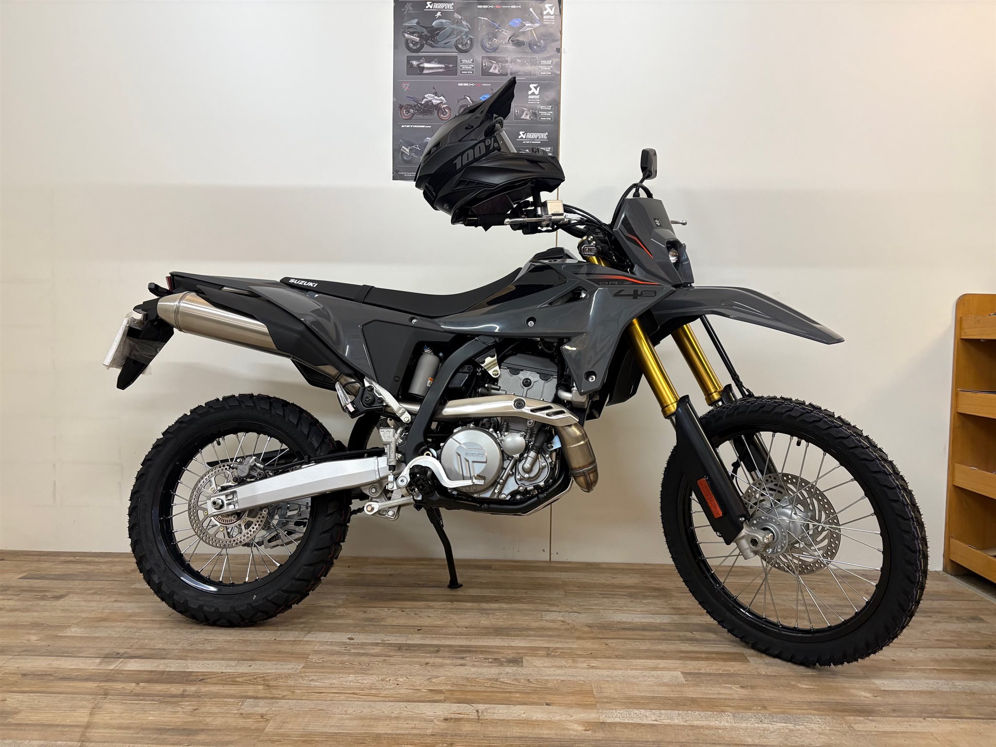 Beim Kauf dieser DR-Z4S erhalten Sie einen hochwertigen Motocross-Helm und eine 100% Brille GRATIS dazu!