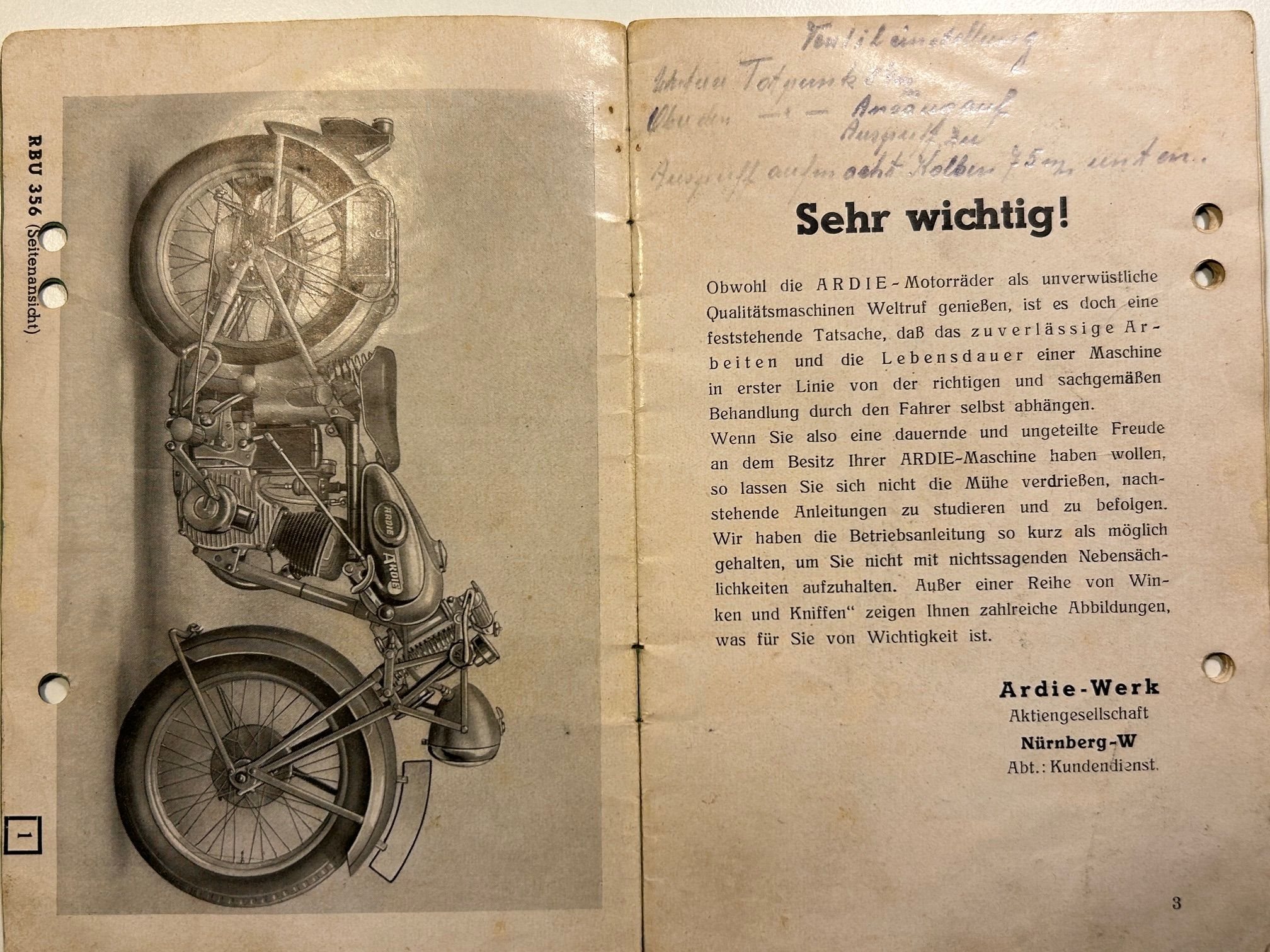 ARDIE RBU 356, 350 ccm, 4 Takt, Bj. 1936, mit original österr. Kraftfahrzeugbrief, Nummernident Fahrgestell u. Motor. Das Motorrad wurde Anfang der 1990er Jahre restauriert, war in Folge bei Oldtimerveranstaltungen im Einsatz und ist seit 1996 stillgelegt. Funktionierte bis zuletzt einwandfrei! Standort Wien, Österreich. VB € 9.500,-