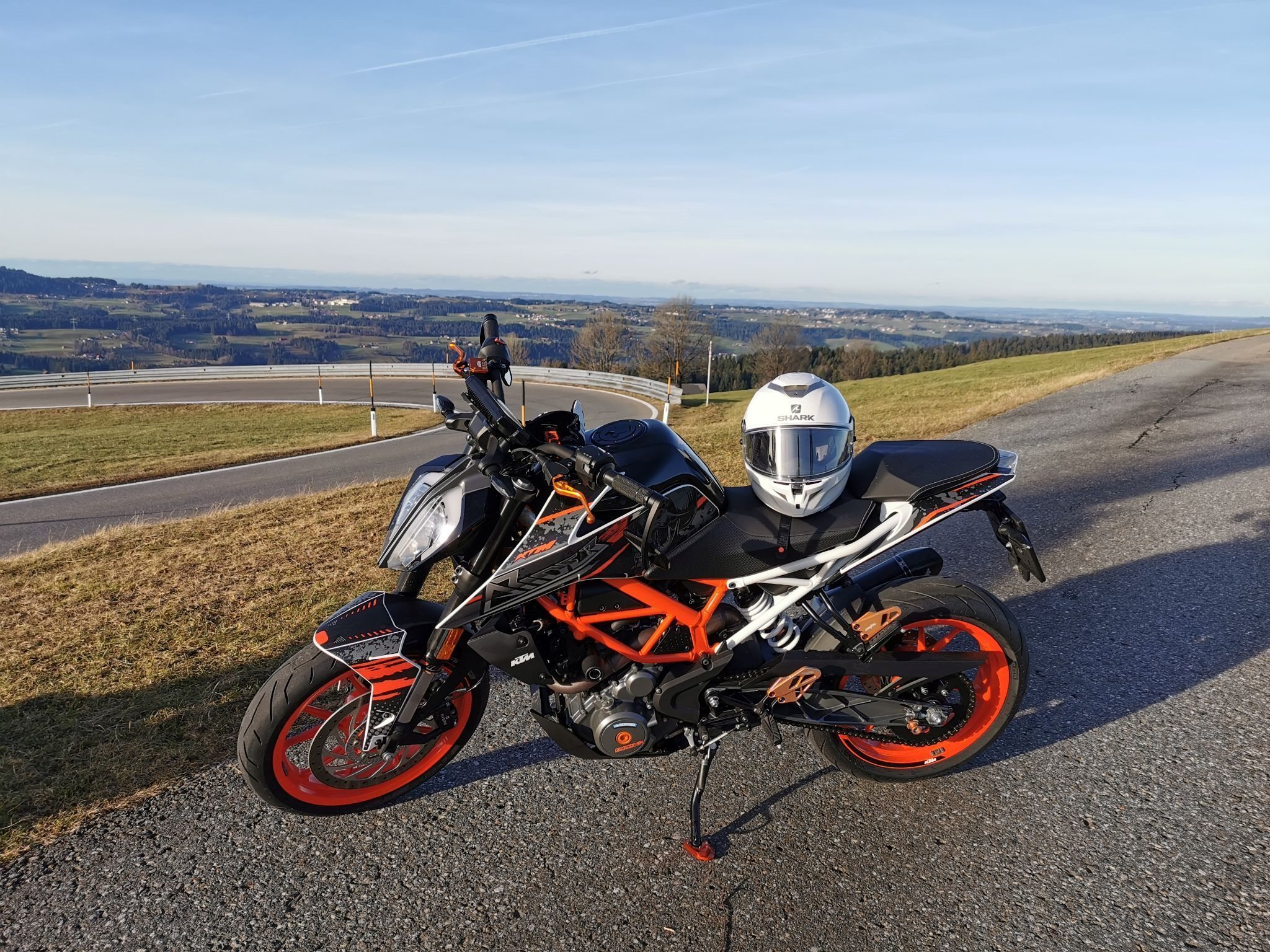 Ergo Fahrer und Beifahrer Sitzbank, Kurze Brems und Kupplungshebel mit ABE, mehrere eloxierte KTM Teile und eine Soziusabdeckung.