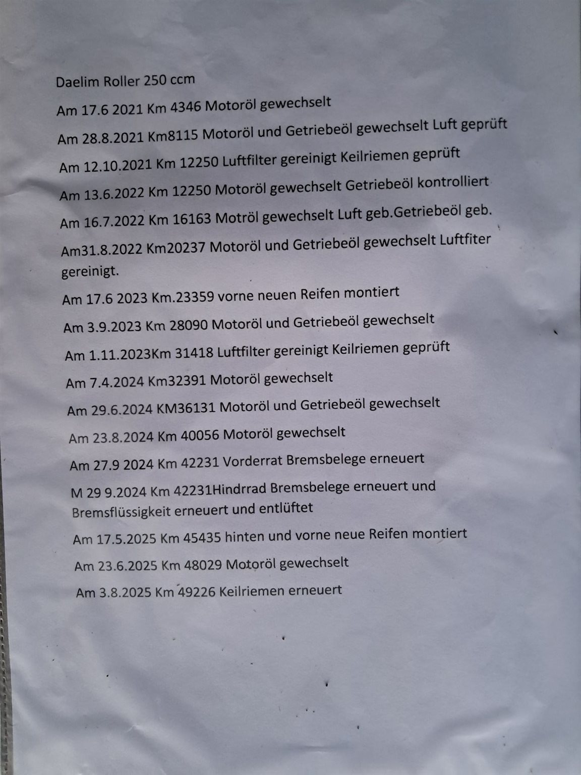 1.Besitz,Antriebsriemen Bremsbeläge Reifen Sevice alles vor 500km erneuert,wurde immer optimal gewartet von privat,1250€ vor Ort minimal verhandelbar