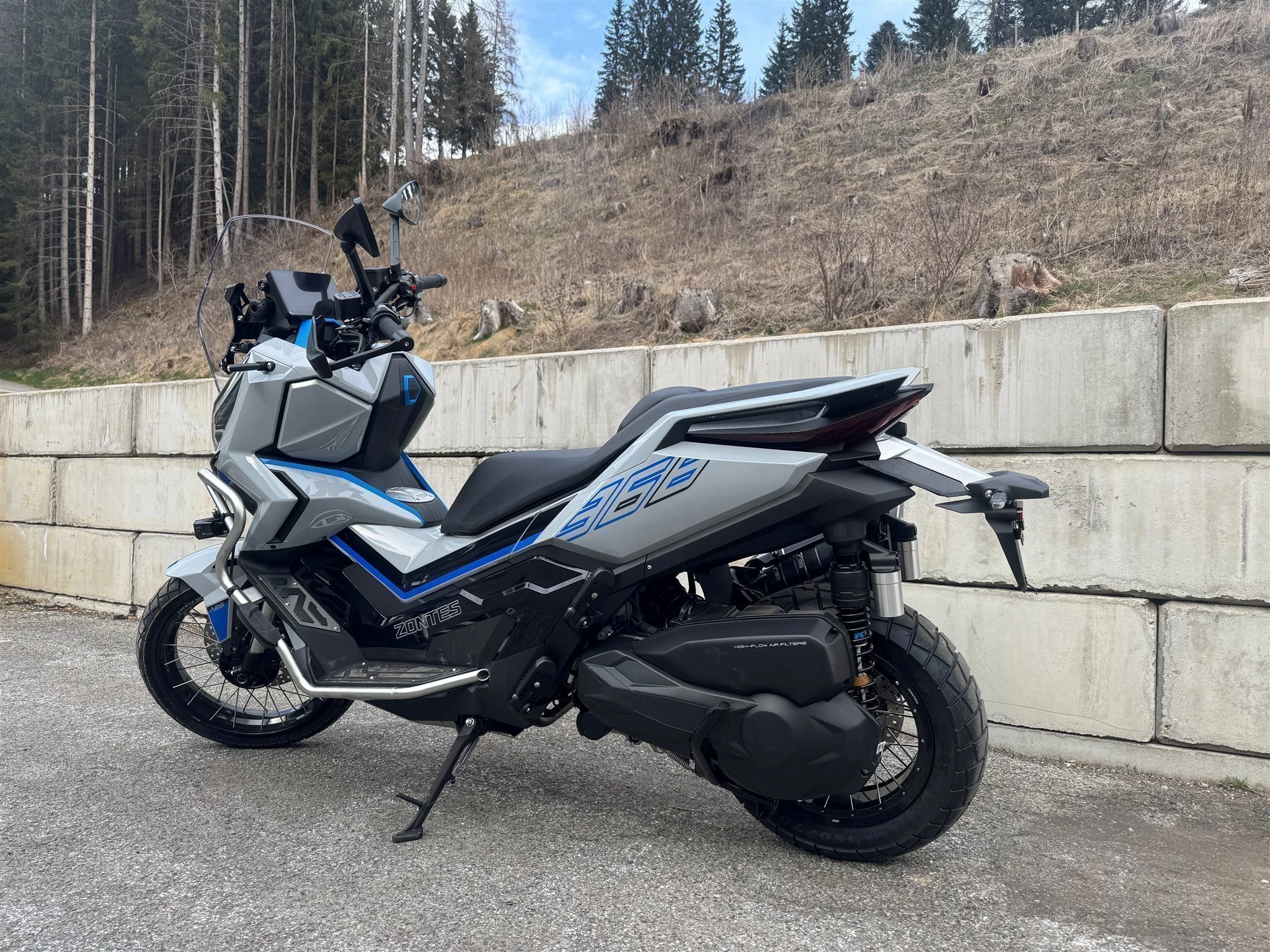 Zusätzliche LED-Leuchten und ein Seitenschutz, der für die härtesten Stöße geeignet ist, gehören beim 368G zur Standardausstattung. Dank dieser Details bestätigt dieser Roller seinen puren Adventure-Stil.