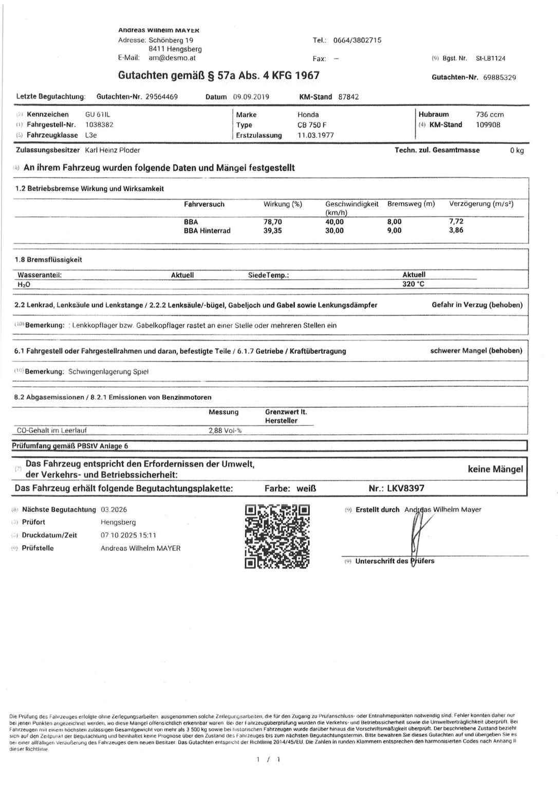 Es wurden im Herbst 2025 einige Reparaturen durchgeführt siehe Rechnung.